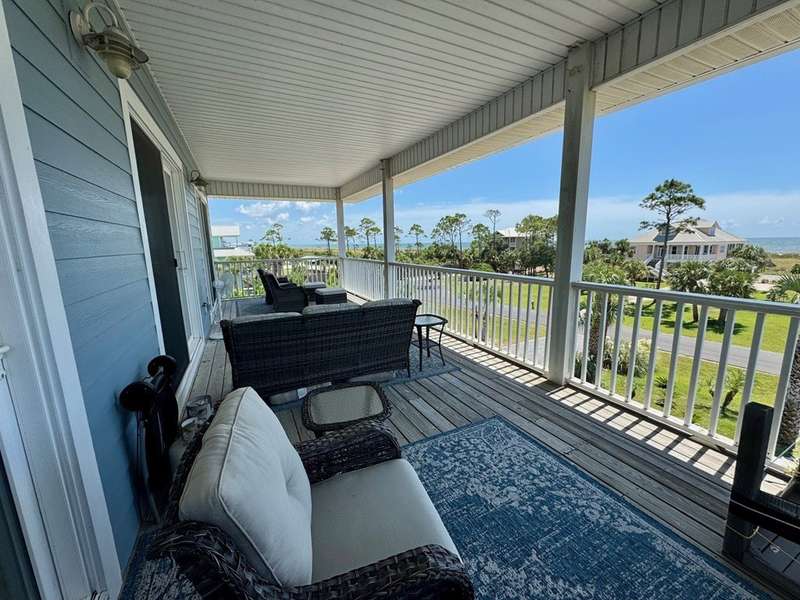 Turn-Key & Fully Furnished Beachside Gem in Two Palms! Welcome to your dream coastal retreat! This 4-bedroom, 4-bathroom elevated 1st-tier beach home was thoughtfully designed for both entertaining and relaxation. Nestled in the sought-after Two Palms subdivision, this residence offers sweeping Gulf views and direct access to the beach boardwalk just across the street. Set against the backdrop of Salinas Park, enjoy the perfect balance of privacy and recreation with pickleball courts, playgrounds, nature trails, and bayside access just steps away. Step inside to a spacious open-concept floor plan where natural light and Gulf views create a warm and inviting atmosphere. The beautifully furnished living and dining areas flow seamlessly into the custom designed kitchen, featuring ample cabinetry and counter space ideal for preparing meals or hosting gatherings. This home features three expansive living areas, providing plenty of room for entertaining family and guests. The luxurious master suite offers balcony access, a spa-inspired bathroom with double vanities, a soaking tub, and a walk-in shower. Three additional bedrooms ensure comfort and privacy for all. Outdoor living is at its best with two large decks/porches, perfect for catching sea breezes, Gulf sunsets, and stargazing nights. The home also includes an elevator for added convenience, making each level easily accessible. Lease Details: Available December 2025, Rent: $4,900/month (includes landscaping & pest control), Security Deposit: $4,900, Tenant responsible for utilities, Small pet may be considered with a refundable pet deposit. Rental application required (no fee to apply; $32 credit & background check if approved). Escape to one of Florida's most beautiful and secluded coastal communities! Whether for beachcombing, entertaining, or simply relaxing by the Gulf, this fully furnished home is truly a must-see opportunity. Schedule your private showing today!