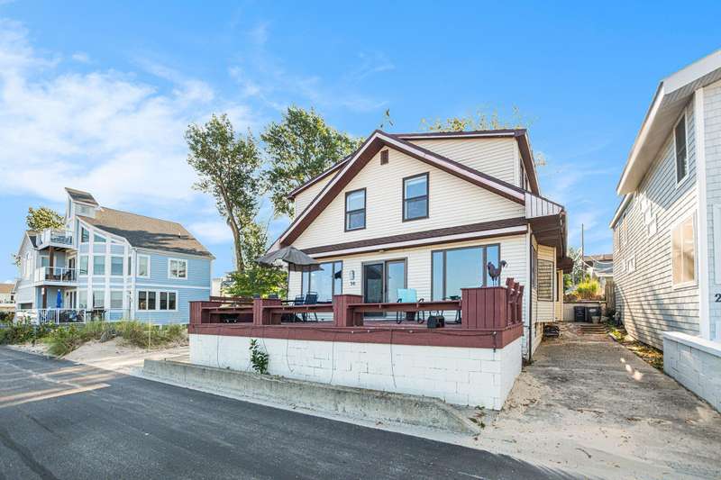 Rare North Beach Opportunity! Own the largest parcel on Lake Shore Dr. in South Haven, a truly one-of-a-kind quarter-acre retreat on the sparkling shores of Lake Michigan. Currently assessed/valued at $2.3M, this property is an extraordinary chance to create your lakefront dream, invest in one of South Haven's most desirable locations, and have the potential to expand your lakeshore vision. Enjoy the property as is, OR start from scratch and build a family compound featuring 2 large lakefront homes side-by-side w/room to spare for pool and outdoor space. The charming cottage-style home blends vintage character with modern updates, including a refreshed kitchen, 6 bedrooms, 1 full bath, 2 half baths, plus an outdoor shower. Short term rental permit is available because home is in overlay district. There's plenty of room for family and friends to enjoy summer memories together. Step outside and experience a private, expansive back yard rarely found along this stretch of beach.
