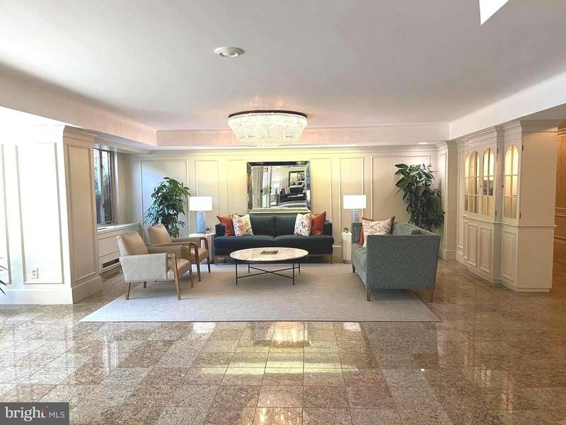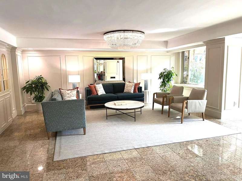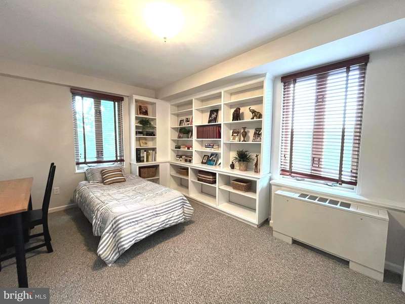 MOTIVATED SELLER. MAJOR PRICE REDUCTION! Beautiful, bright, move-in ready, large 5th floor corner unit, two-bedroom, two bath condo with onsite parking in the lovely Greenbriar Condominiums on Massachusetts Ave NW. Bright kitchen with marble floor, white cabinets, and stainless-steel appliances. This well laid out, large condo boasts an abundance of windows and expansive views throughout, including a three-season view of the National Cathedral spires. Modern hardwood flooring in the living room, dining area and hallways, and top-quality new carpeting in bedrooms. The large, primary bedroom, with plenty of room for a King size bedroom suite, has dual closets and an attractive ensuite bathroom with shower, and the delightful hallway bathroom includes a full bath and room for a practical storage shelving unit. The secondary bedroom is also a good size, with extra room for a working desk, and comes with two bright windows and a wonderful built-in bookcase/shelving unit and large closet. One enters The Greenbriar from a large circular driveway, well off the street, boasting flowering greenery and a lovely walkway conveniently covered with a long, elegant awning to protect from the elements. A delicately landscaped garden is set opposite the entrance for the enjoyment of owners and guests. Friendly, professional staff provide excellent, professional 24-hour concierge service at the front of a graciously furnished large reception area with secured entry. Surrounded by beautifully landscaped gardens and outdoor sitting areas, including a spacious community roof top deck with awnings, multiple lounging areas, and beautiful vistas. (Surface on site parking included in price or dedicated secure underground parking spot can be included for additional $20,000). Condo fee includes all utilities and a range of amenities such as concierge services, electric vehicle charging station, fitness facility, storage unit, community library and well-equipped laundry facilities. If you have been looking for just the right place to call home, this is it!