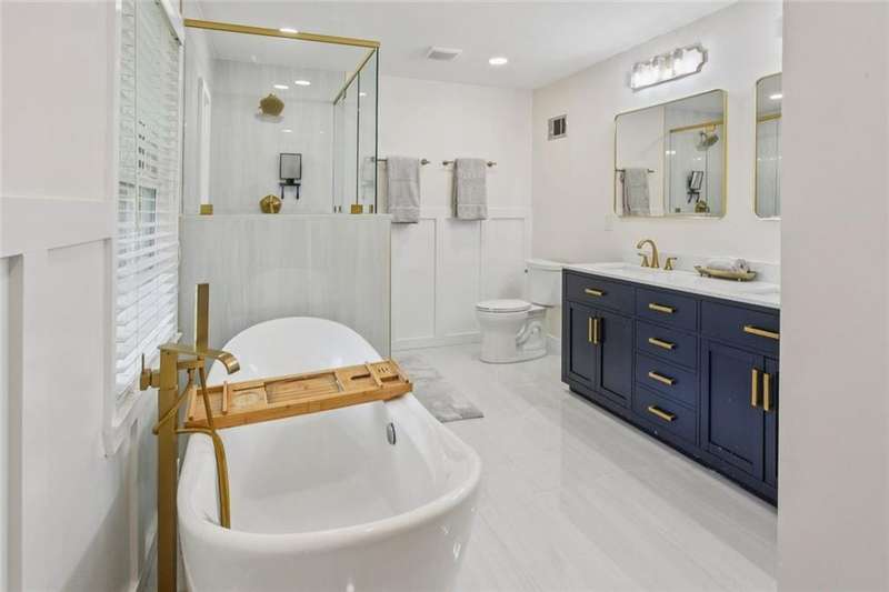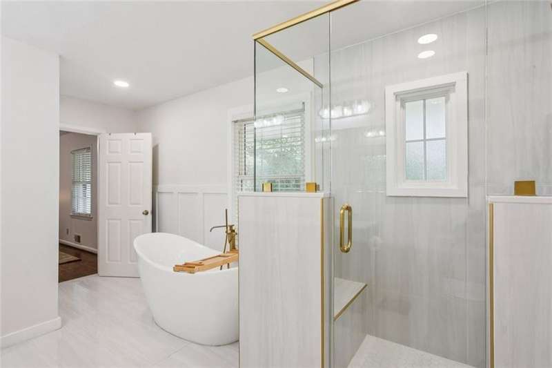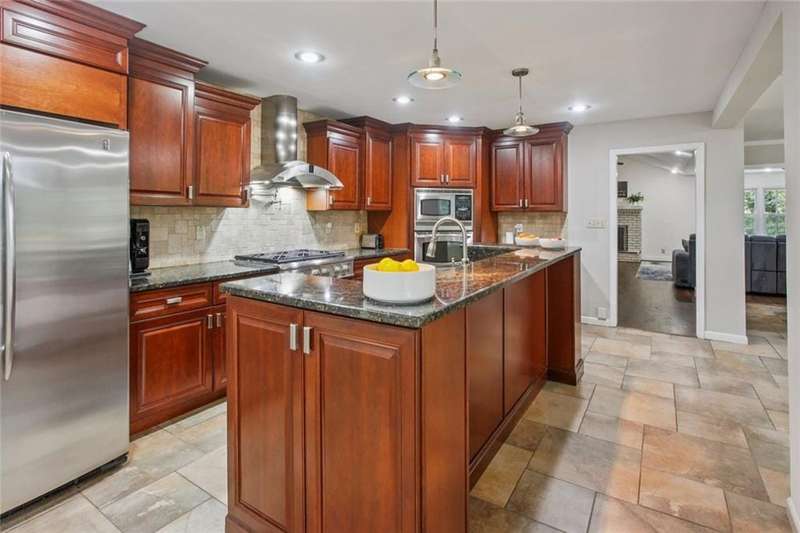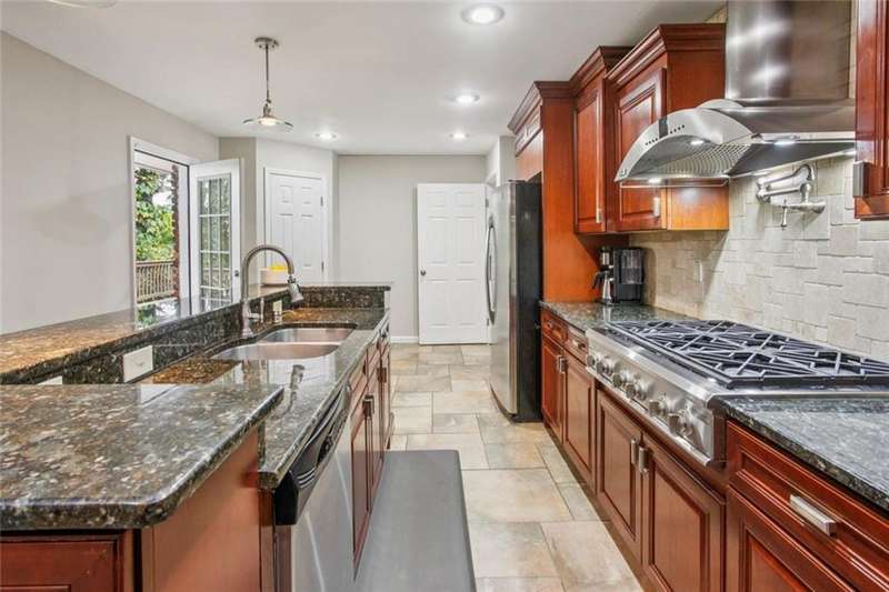 This beautifully updated cul-de-sac brick home sits on .75 acres in sought-after Georgetown! Step inside to find spacious living areas, newer hardwood floors throughout, and a vaulted fireside family room filled with natural light. The high-end kitchen is a chefs dream with stainless steel appliances, vent hood, granite counters, tons of storage, walk-in pantry, tile backsplash, breakfast bar, and a sunny breakfast room surrounded by windows. Enjoy flexible living with two bedrooms and a full bath on the main level, plus a newly renovated owners suite featuring a spa-like bath with soaking tub, glass & tile shower, and double vanity. Upstairs youll find another spacious bedroom with its own private en suite bath. Recent updates include: new roof, plumbing, HVAC, hardwoods, fresh interior paint, newer insulated windows, water heater (5 yrs), new front door, and more. Outdoor living shines with a large private deck perfect for relaxing or entertaining, a fenced backyard, and tons of wooded privacy. Additional features include a two-car carport with parking pad, interior-access to standing crawlspace with excellent storage, plus extra exterior storage - perfect for bikes, strollers, and more. All just minutes from Dunwoody Village, Brook Run Park, the JCC, Ashford Lane restaurants, Perimeter Mall, High Street and top rated Dunwoody schools! Convenient to I-285, 400, and I-85.