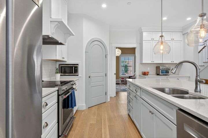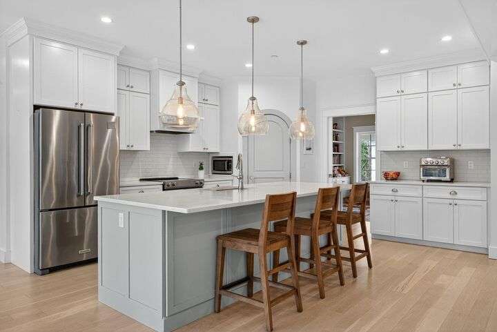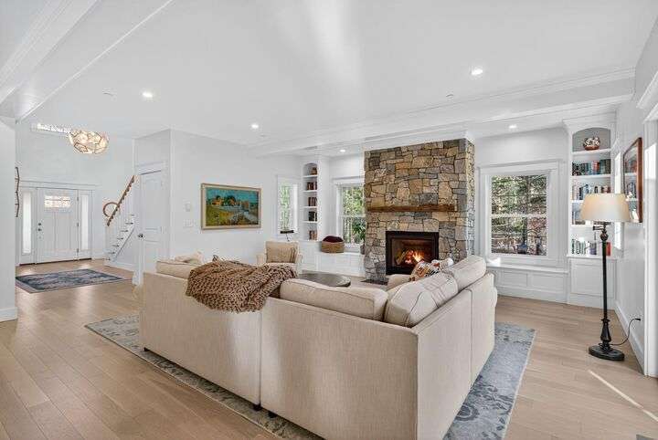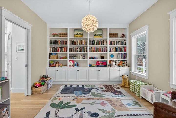 Filled with natural light and designed with comfort and space in mind, this home is located within a top-rated school district. The first floor features high ceilings, a stone-hearth fireplace, and an expansive kitchen with a large island and a dining area with a window seat. Custom built-ins enhance both style and functionality throughout the main level. Additional spaces include a dining room/office/den and a spacious mudroom that serves as a central hub for daily organization. Upstairs, you'll find a generously sized laundry room and a beautiful primary ensuite with a soaking tub, glass-door shower, radiant heat floors and a large walk-in closet. Three additional bedrooms provide space and comfort. Set on a quiet dead-end street, the property includes a wonderful backyard, back deck, and inviting front porch.