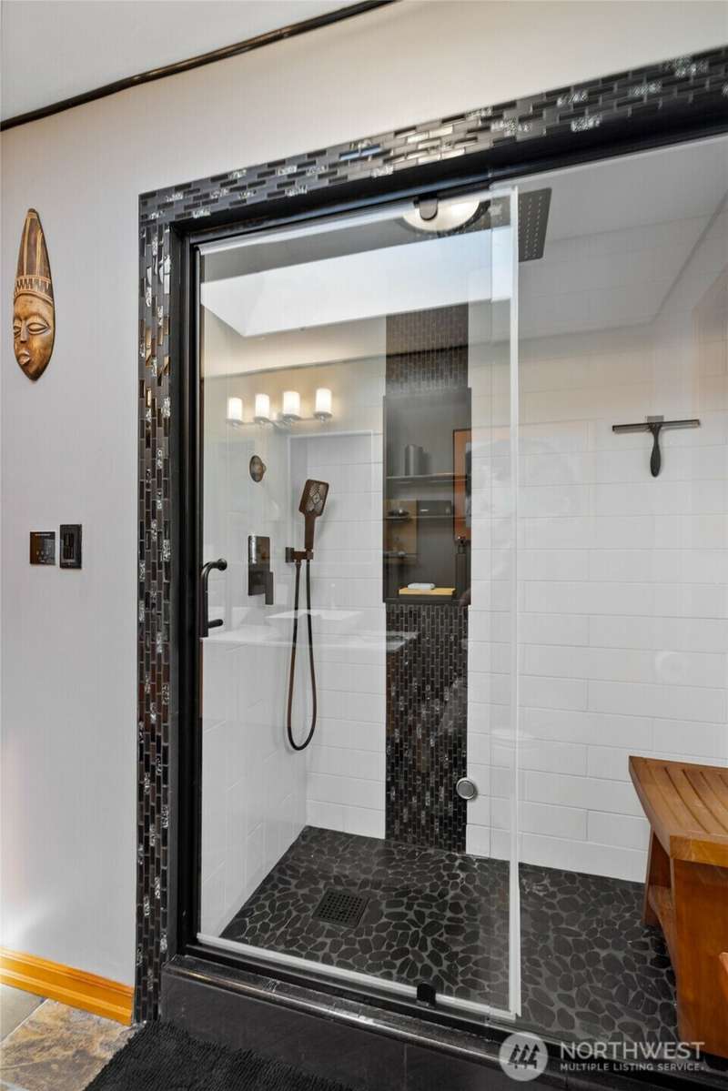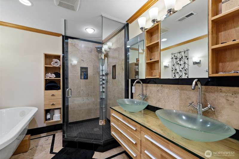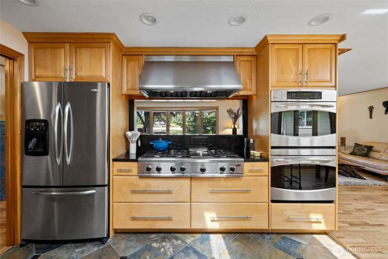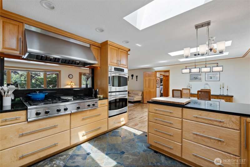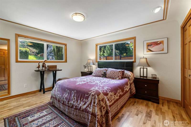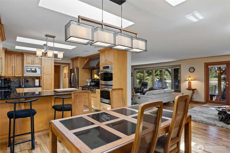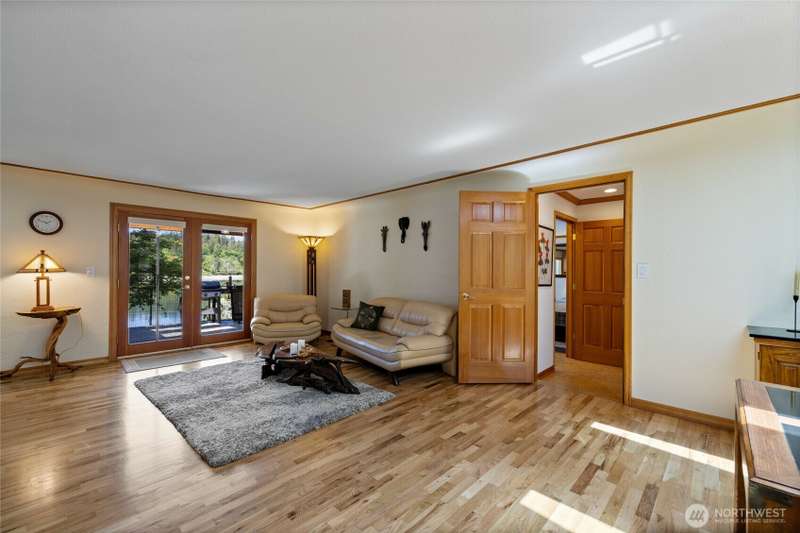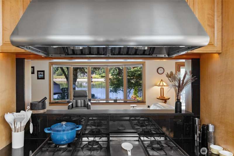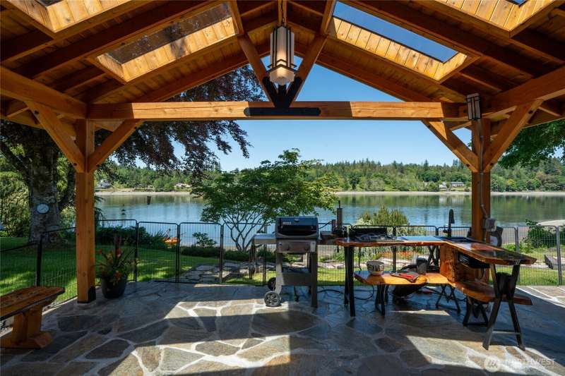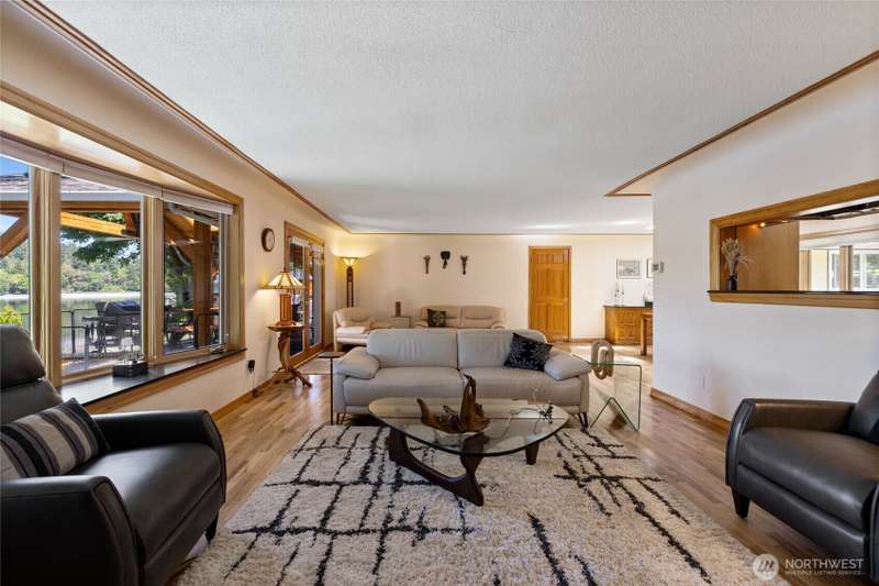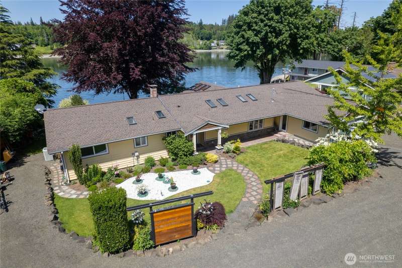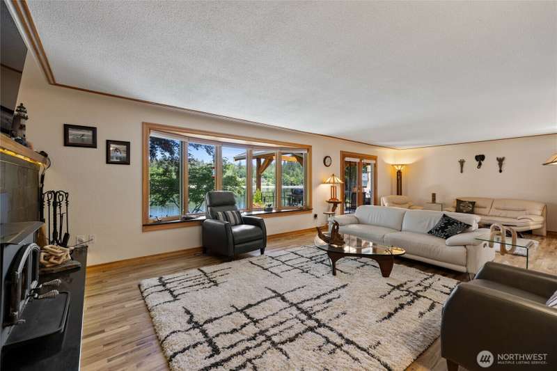 Waterfront Living with Panoramic Views on Hammersley Inlet with breathtaking sunrises. Updated 4-bedroom, 3-bath rambler move in ready. Inside, you’ll find two spacious primary suites, offering possible multi-generational living. Primary suite features its own gas fireplace, stove, refrigerator, and sink, ideal for a private retreat or separate living space. Great room with wood-burning fireplace and elegant slate surround. Chef’s kitchen with stainless steel appliances, granite countertops, 6-burner gas stove and double oven. Step outside through French doors to enjoy 99 feet of low-bank waterfront on your extensive covered patio. includes Davit, RV Parking, bulkhead. This is Northwest Waterfront living at its finest.