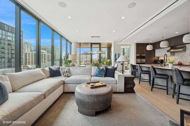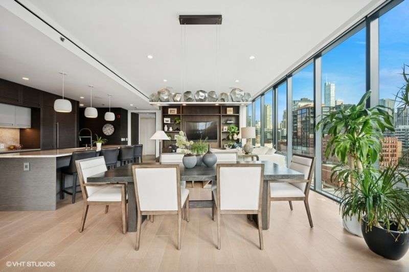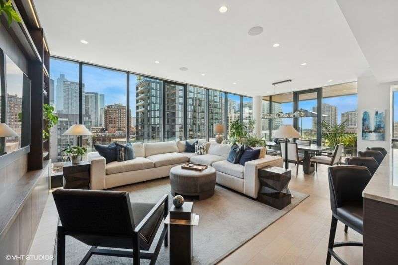 Welcome to this DROP DEAD GORGEOUS BUILDERS UNIT at Superior House!! This stunning SW corner unit, located in the quiet residential area of River North, is the highest preferred 02 tier and the only unit with totally unobstructed views, other than the penthouse! With 3 bedrooms, 3 baths + den, this unit is highly upgraded with an incredible chef's kitchen boasting Taj Mahal quartzite countertops and backsplash, an incredible 9-foot island, Wolf, Subzero and Miele appliances featuring a steam/convection double oven. Due to this unit having higher ceiling heights, there is also an extra row of custom kitchen cabinetry. The floor to ceiling windows allow for an abundance of natural light for this open concept layout. The spacious living room and dining area, lead to an urban oasis corner terrace with attached grill. The luxurious primary suite features a generous walk in closet, a elegant spa-like bath featuring Kallista fixtures, a freestanding Fleurco Adagio soaking tub and marble flooring with heated floors. The second bedroom also has an en-suite bath and the third bedroom is perfect for an office or additional guests. The sophisticated interior, curated by Gary Lee Partners, also offers wide plank oak flooring, custom built in millwork, Lutron controlled shades and lighting, integrated AV system (Control 4/Sonos), upgraded soundproofing in demising walls, and radiant heated floors at perimeter of main living area. Additionally, this unit provides a true laundry room with sink and storage. Two PREMIUM side by side garage spaces for $50k each! Superior House amenities include 24/7 door concierge and security, an incredible rooftop sky deck with firepit and skyline views, an indoor lounge with chef's kitchen, fitness center and herb garden and dog run!