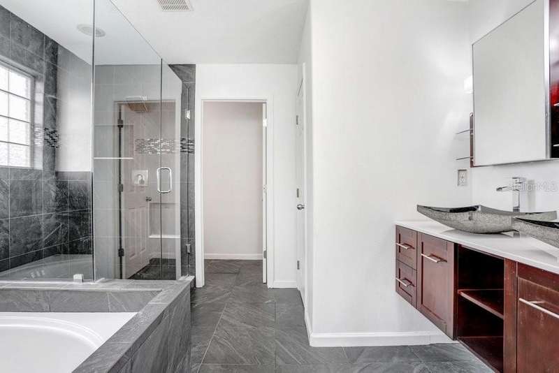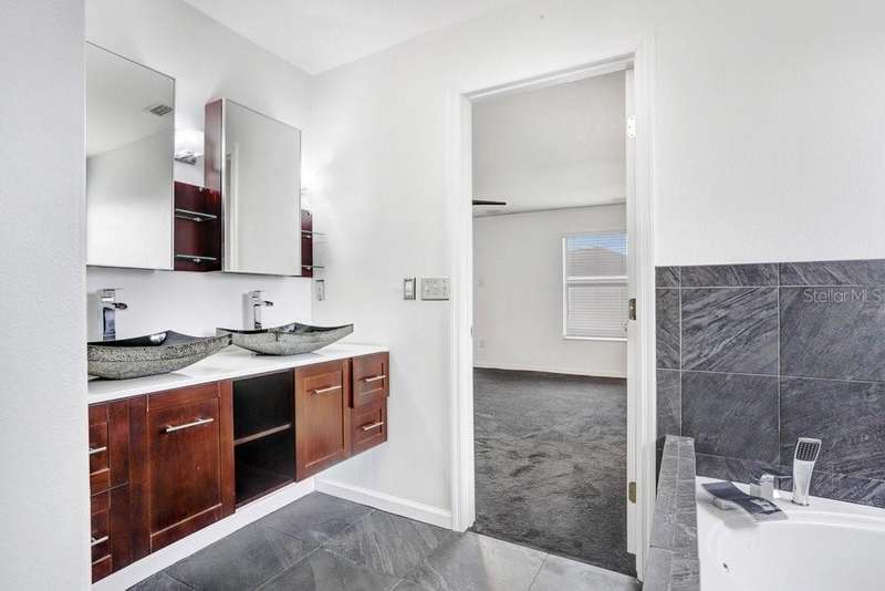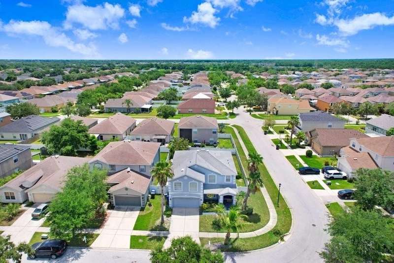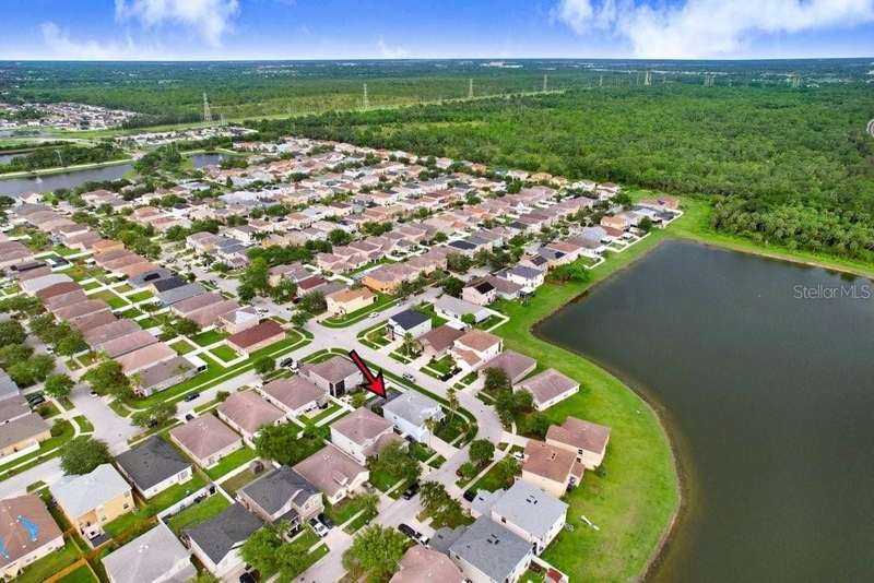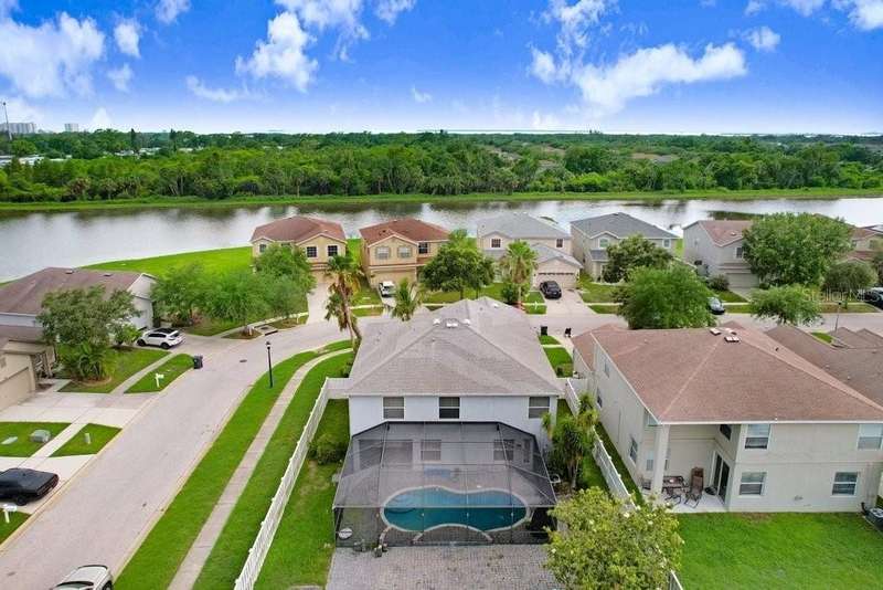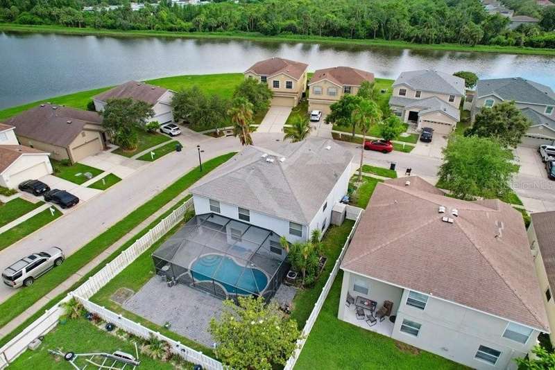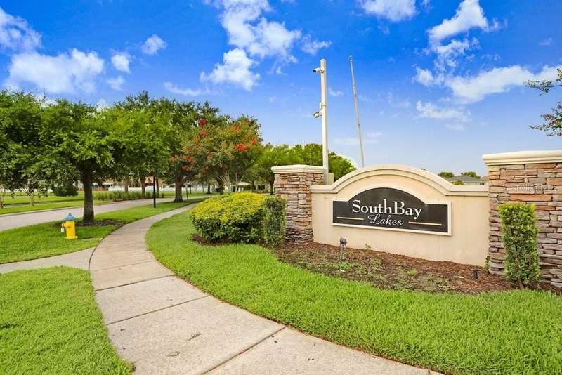Under contract-accepting backup offers. One or more photo(s) has been virtually staged. Looking for a spacious home for the whole family, then this is the property for you! This house is situated in South Bay Lakes and sits on a corner lot that boasts almost 3,000 square feet. Upon stepping on the quaint front porch and opening the double front doors, you are greeted with fresh interior paint with an open floor plan that includes a formal living and dining space, breakfast nook, and spacious family room that are tiled throughout. The kitchen is at the center, providing easy entertainment with stainless steel appliances, granite countertops, tile backsplash, wine fridge and pantry. The first floor also has an office/bedroom as well as a half bath that is convenient for your guests as it is also accessible from the backyard private screened pool, with tranquil blue waters to relax your cares away. Upstairs you will find a massive loft with wood floors that could be used as a movie room as it has surround sound speakers making it a great space to entertain family and friends .There is also a laundry room upstairs for your convenience as well as 2 bedrooms that share a bathroom with two double sinks and a shower/tub combo. Upon entering the primary bedroom suite, you are greeted with its enormous size, making it a great retreat with his and her closets with sliding doors. The en-suite bathroom has a large soaking tub, double sinks, separate glass enclosed shower, and water closet. Alos has a community pool and sidewalks that provide for a beautiful stroll outside. Conveniently located near I-75 / I-4 for an easy commute as well as shopping and entertainment. Call today for a private showing. One or more photos have been digitally staged. * New Roof at Close*