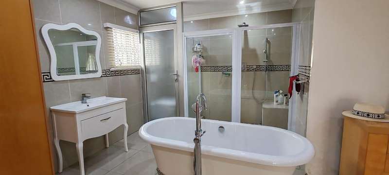 - Expansive lounge and dining area - Modern fitted kitchen opening onto pool and braai area - 3 bedrooms, including a family bathroom and main bedroom has an en-suite - Upstairs is another lounge or office space opening up to a balcony, extra bedroom and en-suite bathroom - Double tiled garage (No Doors) - 2 separate additional units: a 1-bedroom flat and a studio unit for the extended family - Utilities billed according to usage Ideal for large families! * Pool will be cleaned and filled again (nothing wrong with it)- Owner is also willing to do necessary repairs to property.