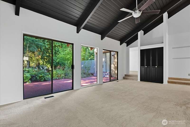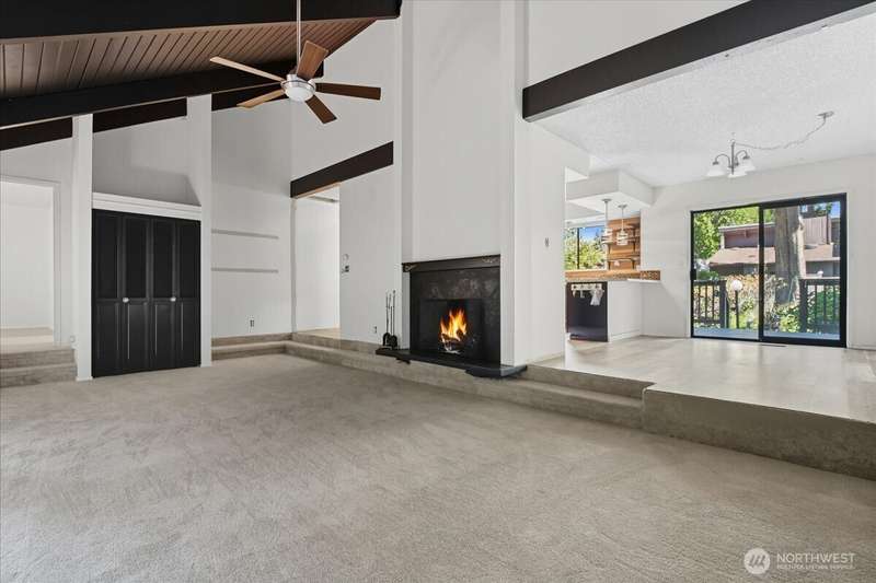 Sophisticated Regents Hill condo offering 1-level living with low-maintenance ease! This 2 BR / 2 BA, 1378 SqFt home offers an open floor plan filled with natural light from expansive near floor-to-ceiling windows and sliders that seamlessly connect the indoors to a private patio. Vaulted living room includes striking beamed ceiling and a fireplace, adding warmth on winter days. Updated kitchen features stunning wood accents, tile backsplash, pantry, eating bar, and stainless appliances. Spacious owner’s suite boasts a vaulted ceiling, dual-sink vanity, and walk-in shower. A 2-car garage adds everyday convenience. Blending style, comfort, and functionality, this home is an exceptional find in a desirable Vancouver community.