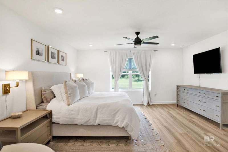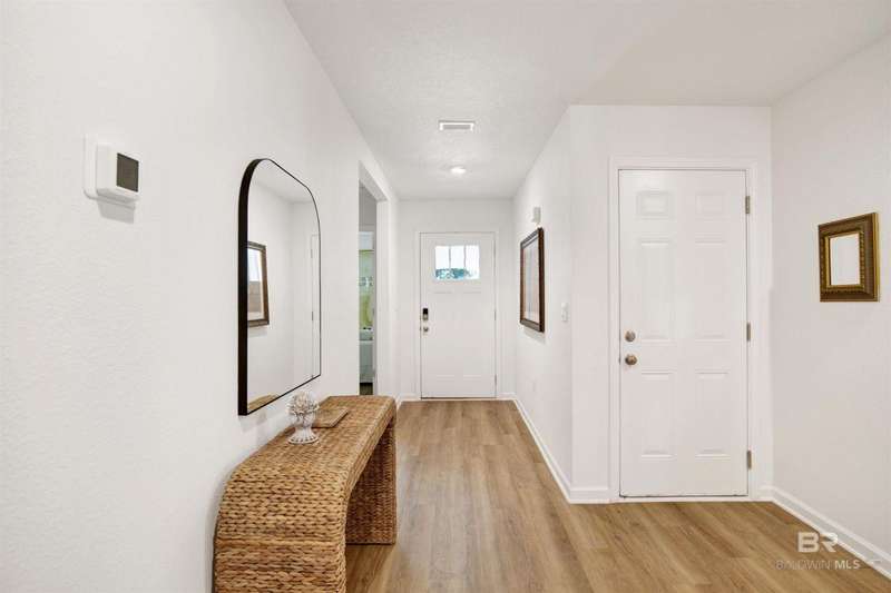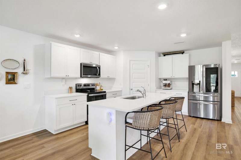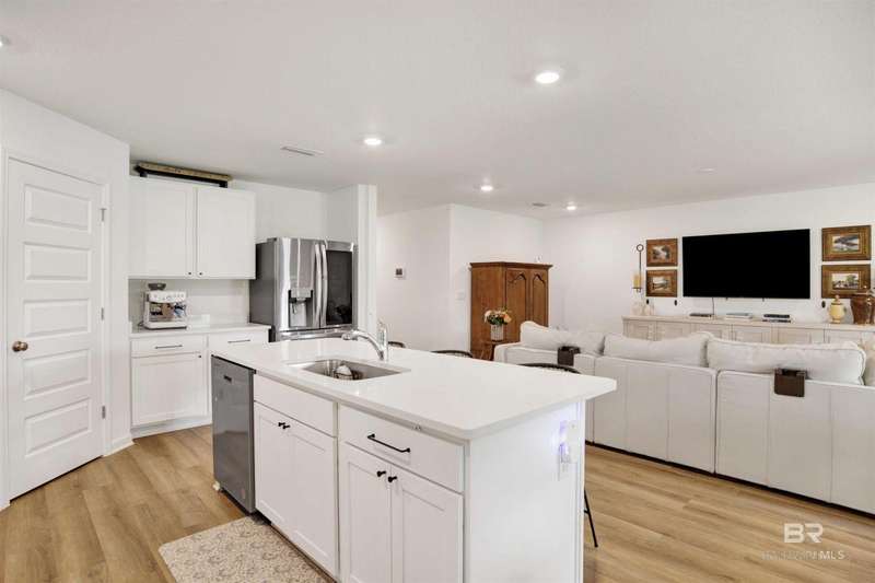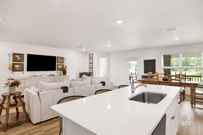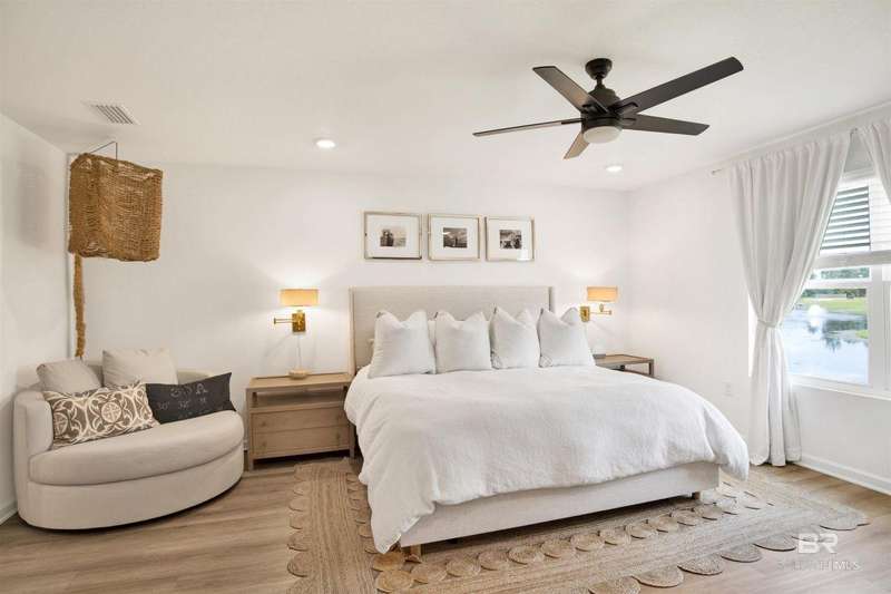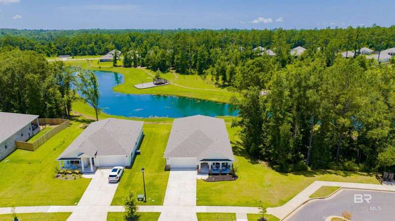 **Open House 11/09 from 2-4pm** With water views from the entire back of the home, this better-than-new home gives the peaceful feeling of living on a lake while being conveniently located in Fairhope! This popular Ryder floorpan is move-in ready with 4 beds/2 baths. The Gold Fortified home is in immaculate condition and features beautiful LVP flooring throughout. The spacious kitchen is open to the living and dining rooms with pristine views of the gorgeous and serene community pond and fountains, which is maintained regularly by the HOA for optimal views. From the back porch, enjoy those same water views along with the sound of birds chirping in the woods to the west. That's right - only neighbors on ONE side of this home for a premier lot position! The home also features a split floor plan, gorgeous white quartz in the kitchen and bathrooms, white cabinets, a walk-in pantry and walk-in his/hers closets in the primary, plus smart home features and blinds throughout. Community amenities feature walking trails, the playground Treehouse and gazebo that overlooks the community pond, sidewalks, and more! This home is built to Gold Fortified standards, which offers savings on homeowner's insurance. Buyer to verify all information during due diligence.
