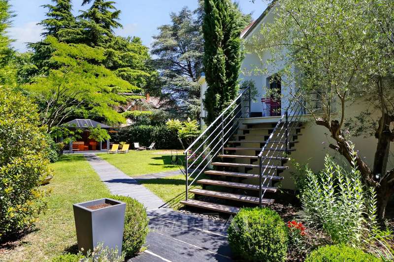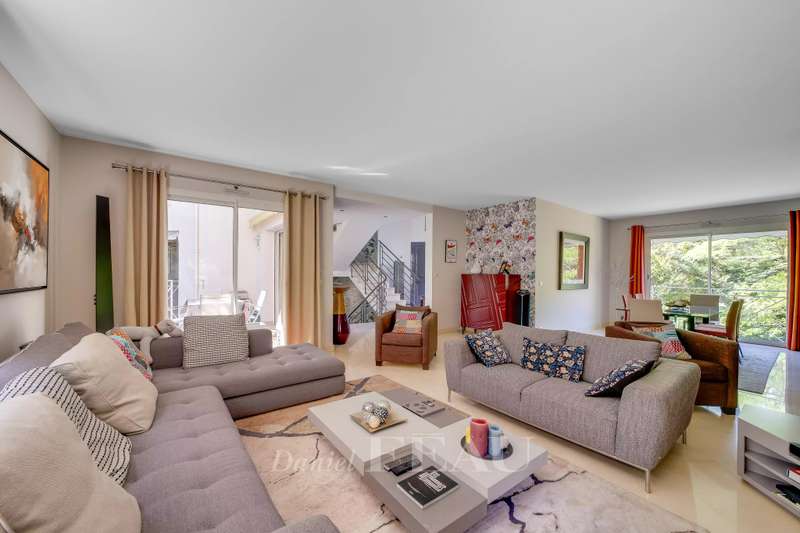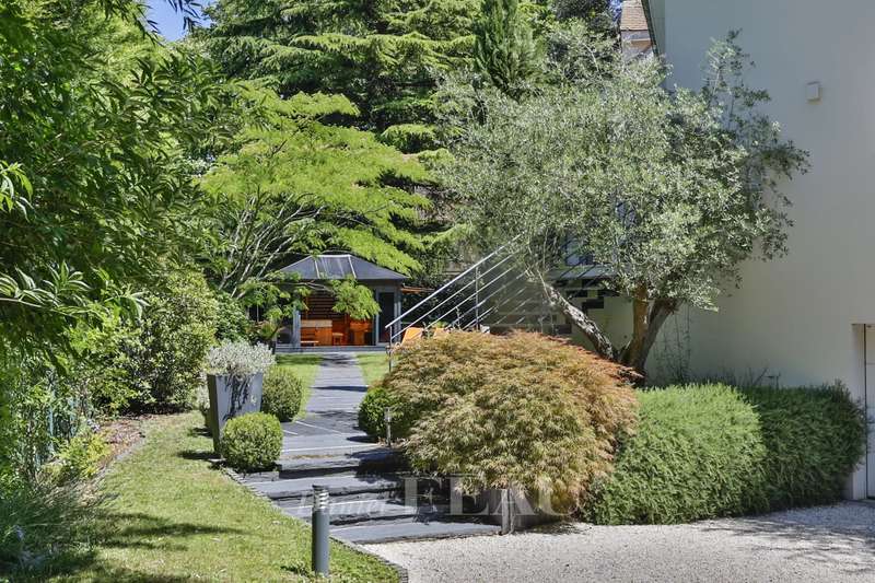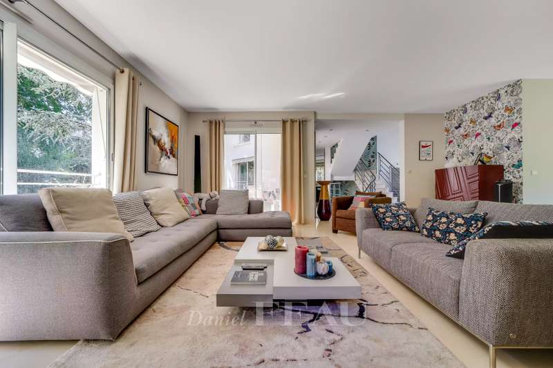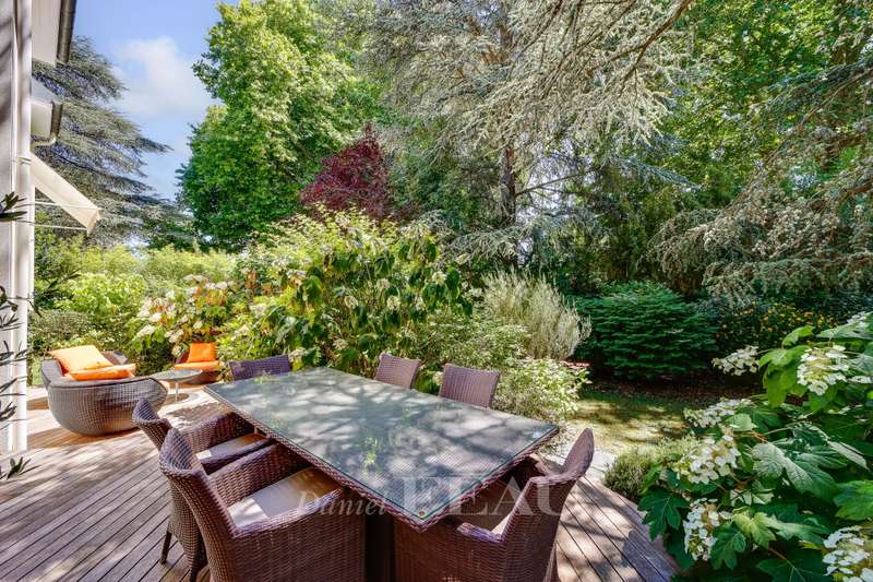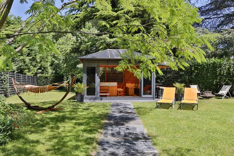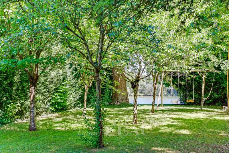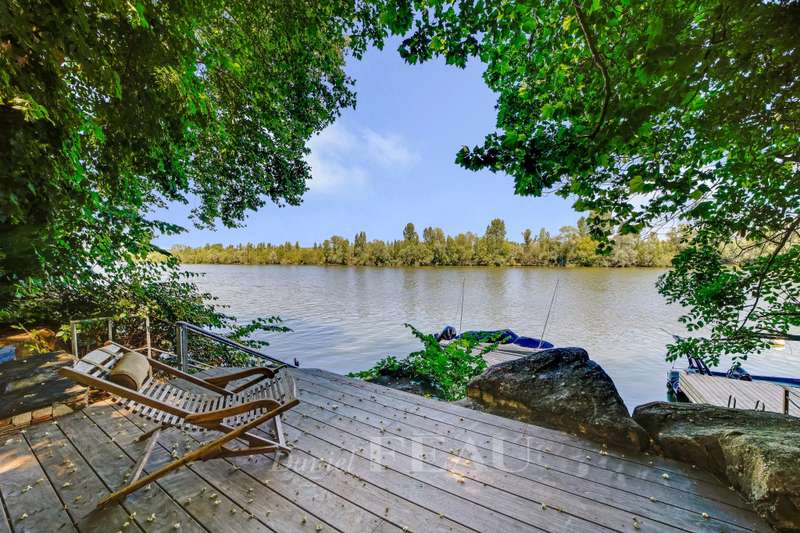 VILLENNES-SUR-SEINE - Discover a property on the Île de Villennes, offering a rare privilege: living on the banks of the Seine. This 208 m² (342 m² usable) house, built in 2001, offers high-quality features. The ground floor comprises an entrance hall with a cloakroom and toilet, a living room with an insert fireplace, all opening onto a level terrace and providing access to the garden. A spacious 35 m² eat-in kitchen with a central island and dining area completes this level. Upstairs, discover a 35 m² master suite, including an open bathroom and a dressing room. Two other bedrooms with wardrobes share a shower room and a separate toilet. The basement is fully furnished: a gym, a laundry room, a shower room and toilet, an air-conditioned wine cellar, and a large 35 m² garage. The exterior is a haven of peace with a landscaped garden of 1800 m², a large sunny terrace, a jacuzzi, and, as a bonus, a private pontoon offering privileged access to the Seine. Close to the A13/A14 motorway, a stone's throw from the city center, schools, shops, and the SNCF train station.