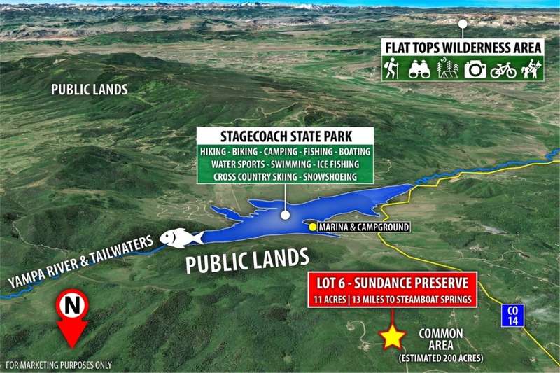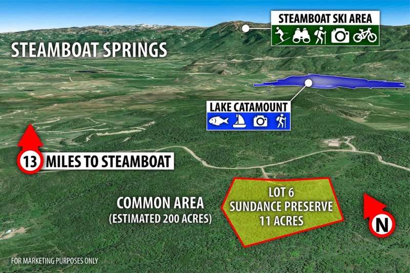 Experience breathtaking vistas, lush trees, seclusion, and an abundance of recreational possibilities right at your doorstep! This expansive 11+acre Sundance Ridge Preserve property boasts unparalleled, up-close views of the snow-draped Flat Tops Mountains, as well as direct access to a network of well-maintained neighborhood trails, leading to hundreds of acres of protected public land for serene nature strolls and wildlife encounters, all conveniently starting from your own land. Witness elk and deer quench their thirst at the nearby pond, bathed in the soft glow of a mountain summer sunset. Sundance Ridge Preserve stands as a serene haven comprising only 11 residential plots, benefiting from a community water system and encompassing over 200 acres of shared open space that attracts diverse wildlife and ensures ultimate privacy. Located a mere 15 miles from Steamboat's bustling ski area, dining establishments, shopping, and restaurants, this property offers proximity to Stagecoach State Park for fishing, hiking, and boating adventures, access to the Yampa River's tailwaters for angling enthusiasts, and the opportunity to explore the scenic trails of Sarvis Creek Wilderness. For those who cherish the great outdoors, expansive landscapes, encounters with wildlife, and personal privacy, this property is an absolute must-see.