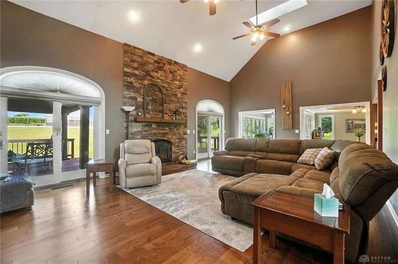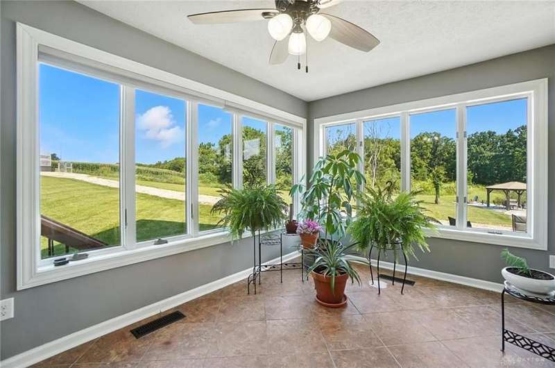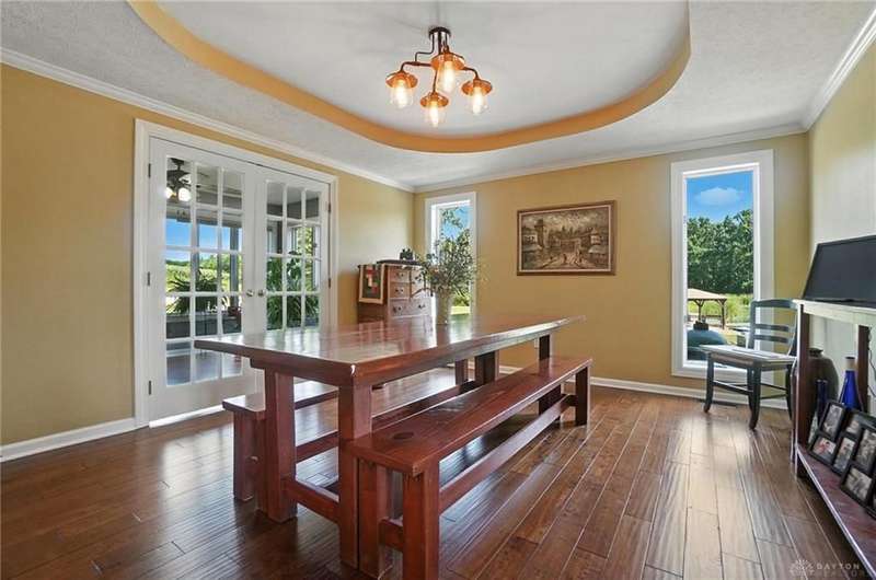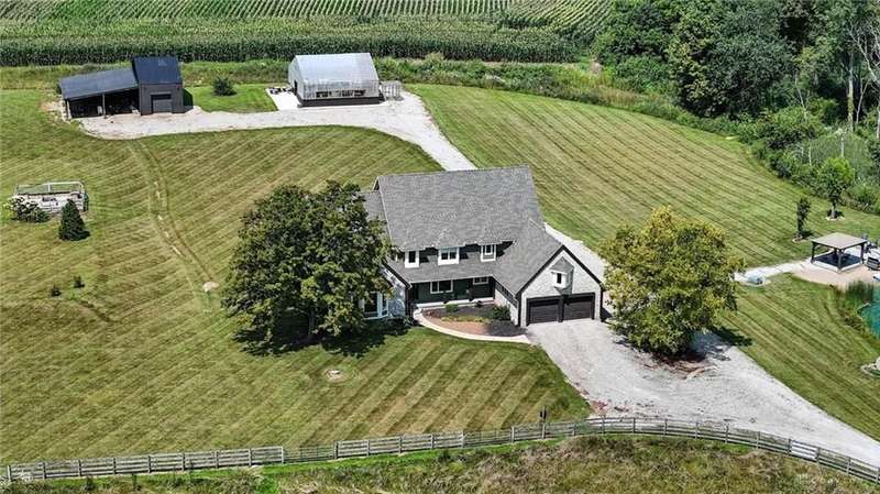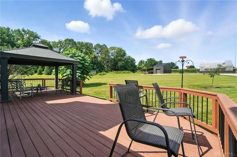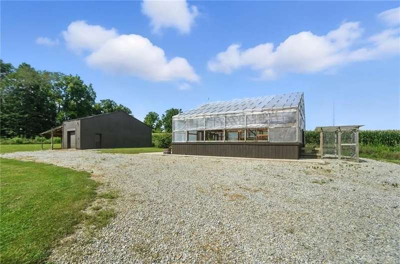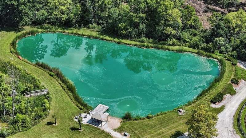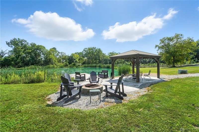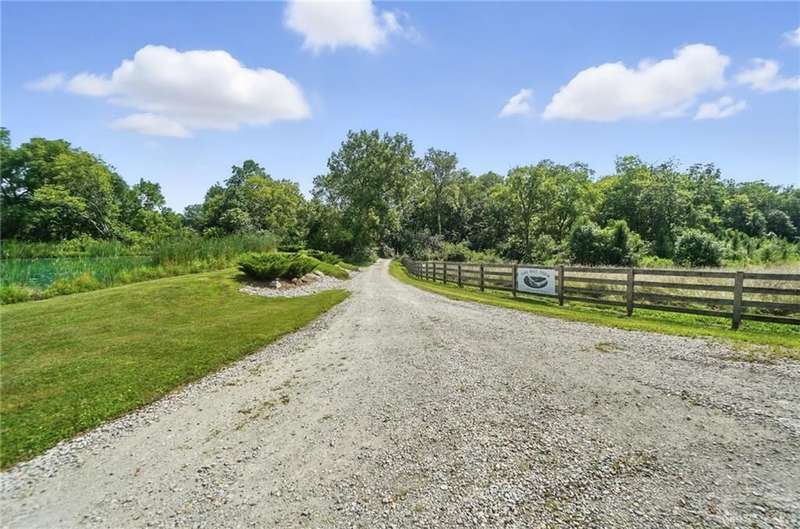 Can you believe it? You have finally found that serene & inviting slice of country life that fulfills your dreams. Tucked away in a picturesque area of Sugarcreek Township, this stunning estate spans over 10.5 acres of lush land—an extraordinary find with dependable public water & natural gas. Beautifully marrying rural charm with modern conveniences, a truly magical property unfolds when venturing down the meandering lane. Beginning with the tranquil, fully stocked pond, an alluring dock speaks to you, almost as if calling out your name. "Grab your fishing pole. Roll up your pants legs. Soak your tired feet." Attached to the dock is an endearing gazebo that whispers for you to savor your early morning coffee while watching the sparkling dance of water. For gardening enthusiasts, a generously sized greenhouse offers year-round indulgence, while a nearby chicken coop checks your farm-fresh eggs box. There is even a spacious barn/workshop for the hobbyist or DIY enthusiast, which offers endless possibilities. Stargaze, host a barbecue for family & friends, or simply bask in the beauty of nature. You have so many options outside. And let's not forget the inviting interior! With five generously sized bedrooms and 4.1 updated bathrooms, including a luxurious primary bedroom conveniently located on the main floor, luxury blends seamlessly with everyday practicality. Just a few other notable features since space is limited—newer hand-hewn wood flooring on the main level, enormous, updated kitchen, Cambria Quartz counters, massive great room with a soaring cathedral ceiling & stunning stone fireplace, sunroom—the list is endless! Ideally situated near Miami Valley Hospital South, Wright-Patterson Air Force Base, The Greene, and an array of other attractions, this location offers the ultimate in convenience! If wide-open spaces, unmatched privacy, and nature at its finest resonate with your spirit, call immediately! Your dream of a peaceful paradise can now be your reality.