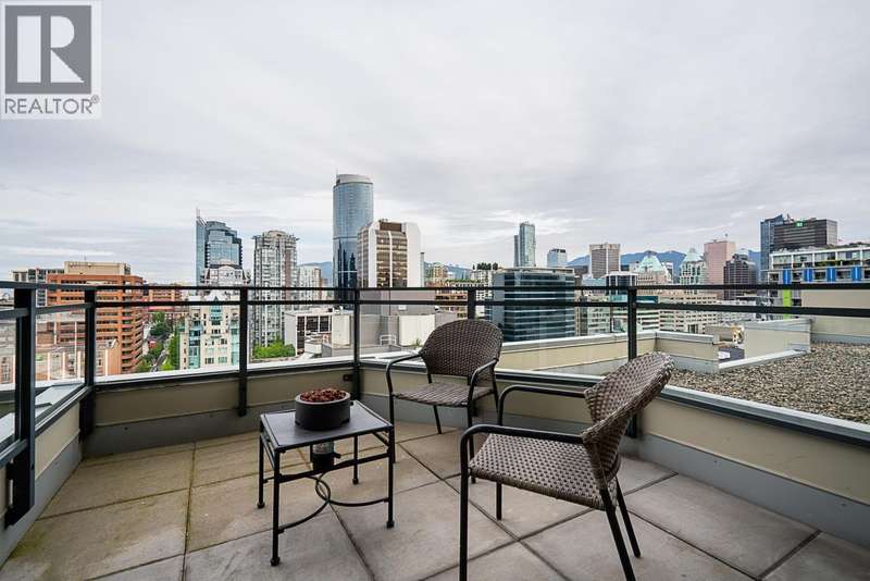 Exceptional Yaletown Penthouse with Expansive Outdoor Living. Experience the ultimate in urban living with this rare two-level penthouse featuring over 1,450 sqft of interior space and four private patios. This home offers the feel of a house, with both bedrooms upstairs, each with its own ensuite for added privacy and comfort. Enjoy sweeping southwest views over Emery Barnes Park, close to Granville Entertainment district, and effortless access to all your favorite Yaletown patios-perfect for summer evenings. Just a 5-minute stroll takes you to the seawall, ideal for morning coffee walks or sunset runs. Building amenities include a concierge, fitness centre, and secure parking with EV charging in your stall. Come see this extraordinary home in person! (id:58403)