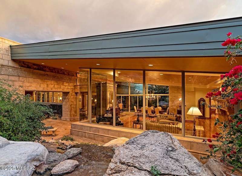 Designed by renowned architect Michael Franks, this extraordinary single owner custom built residence is one of a kind. From the dramatic walls of glass bringing the lush exterior spaces indoors, to the richly layered materials of cherry wood and custom concrete which perfectly juxtapose the modern lines of this home against its unparalleled natural environment. With a sprawling split floor plan that offers formal and flexible spaces, every room exudes a refined blend of artistry and craftsmanship which make it warm and intimate. Set within an exclusive guard gated community with paver finished roads, this private home captures timeless elegance and exceptional design integrity.