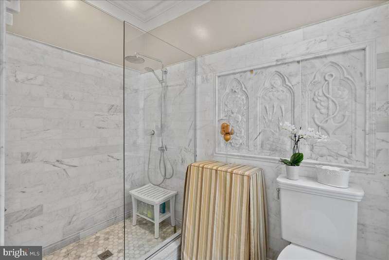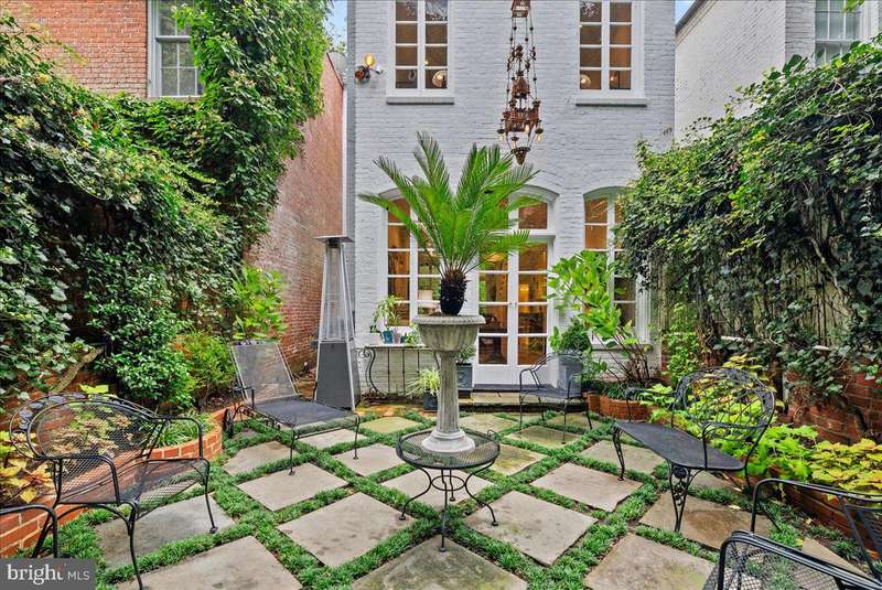 Situated in East Village, this storybook 1887 Georgetown townhouse has been recently renovated and updated throughout; preserving its classic appearance and maintaining its charm. This home offers 2,650 square feet of living space with 3 bedrooms and 3/1 bathrooms. Features include original wood flooring and windows, Italian tile, high ceilings, crown moldings, and three fireplaces located in the living room, family room, and primary bedroom; all which have been converted to gas with logs. The gourmet kitchen features marble counters and new appliances - a Stainless Steel Italian Refrigerator, Miehle Dishwasher, Rohl Kitchen Faucet, and a refreshed and repainted appearance. The upper level has two large bedrooms and two full bathrooms, the primary bedroom includes a new primary bathroom, new mahogany wood doors, and a Juliette balcony that overlooks the front of the home. The lower-level suite has a large bedroom with built-ins, a living space, laundry room with new appliances and tilework, full bathroom, and the previous unfinished closet space has been converted into a retro kitchen with all new appliances. New Central AC, New Boiler, and a New Unlimited Hot Water System function throughout the entire home as well as a newly implemented basement level heating and AC system with a mini-split unit. French doors in the formal dining room enter into the rear garden which has been excessively landscaped with new plants and grass, lower terrace stonework, a new stone terrace top level with brick work, and a new fence. Both the front and the rear include solar panels, automated irrigation, and lighting systems.