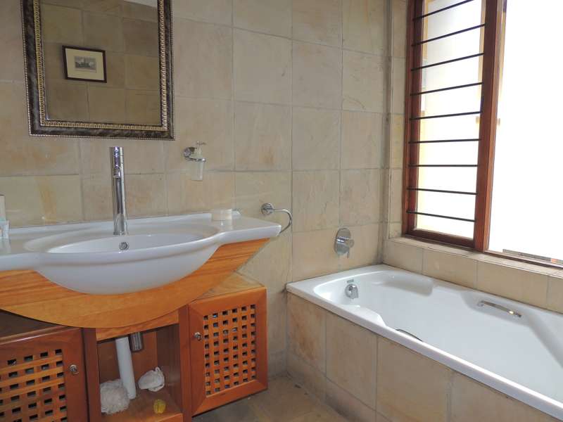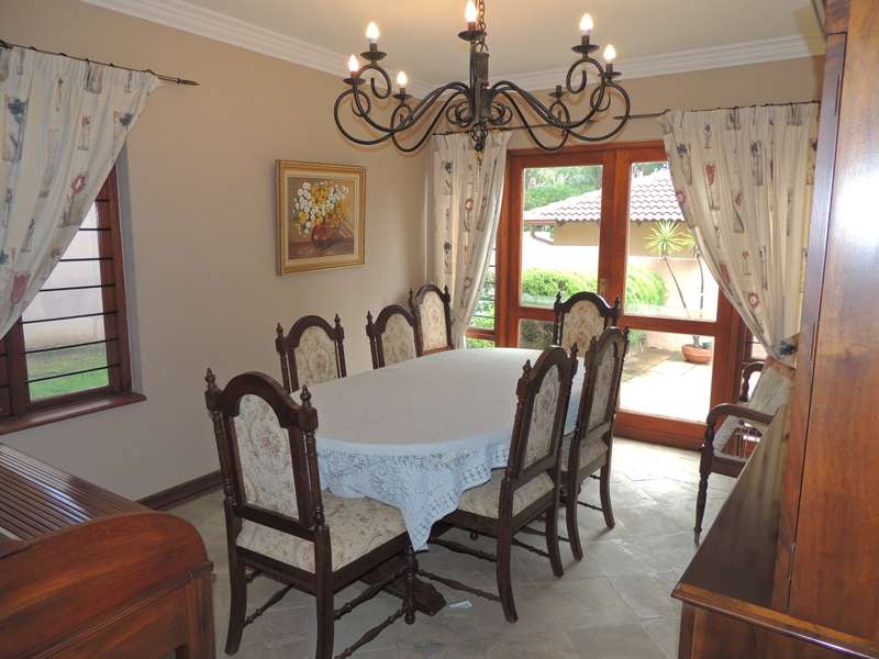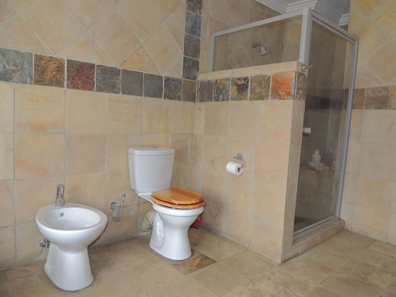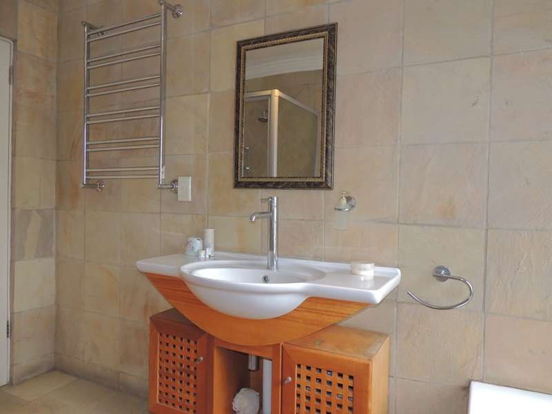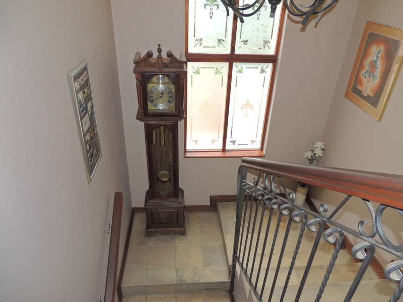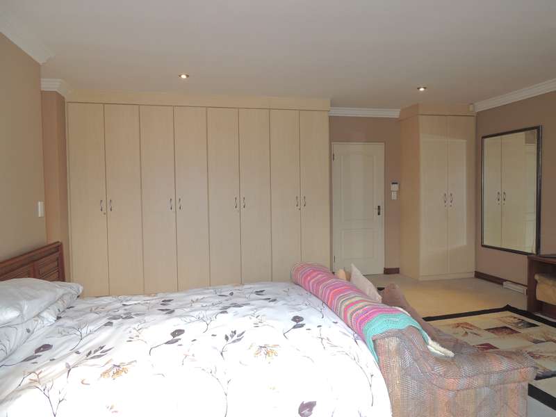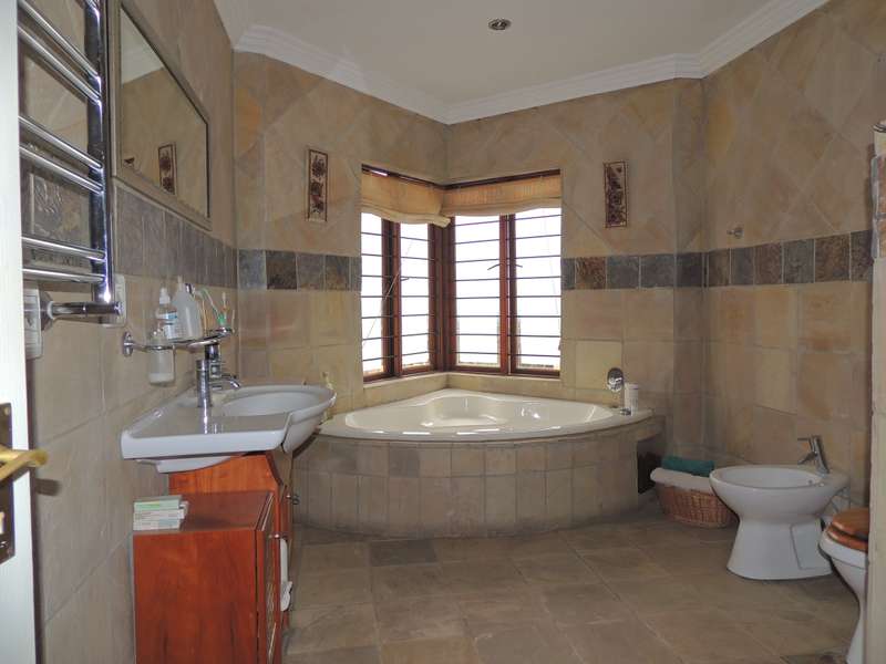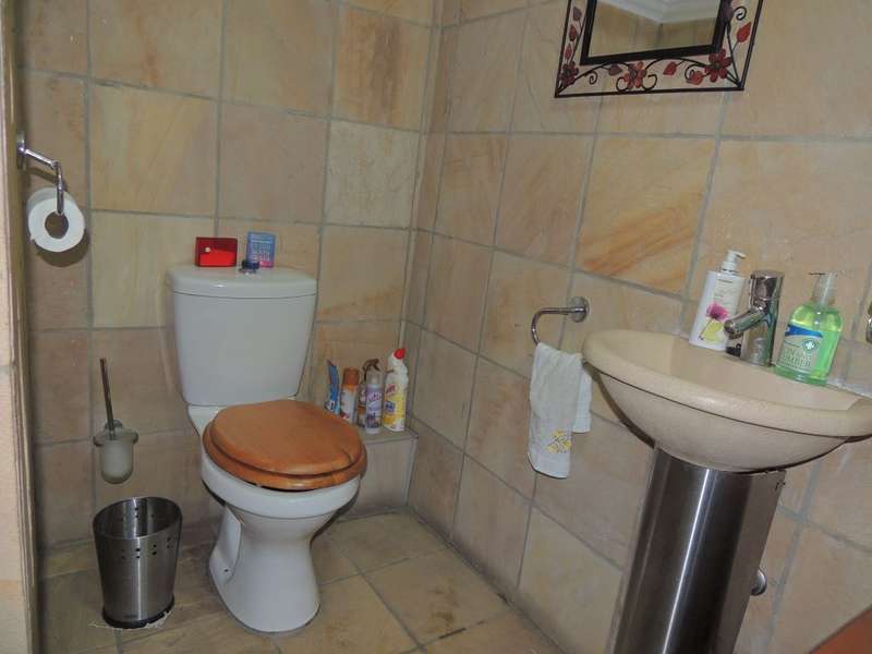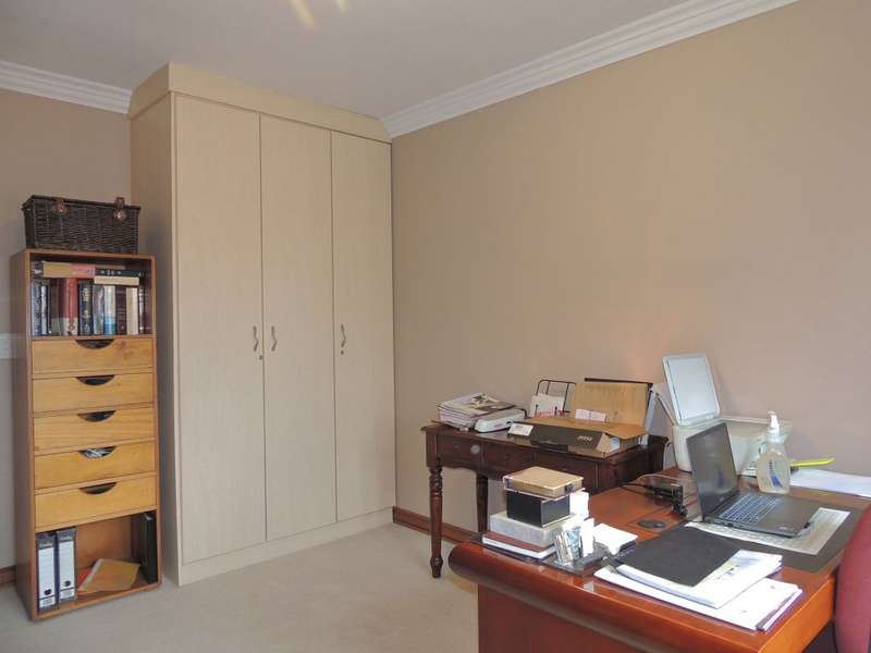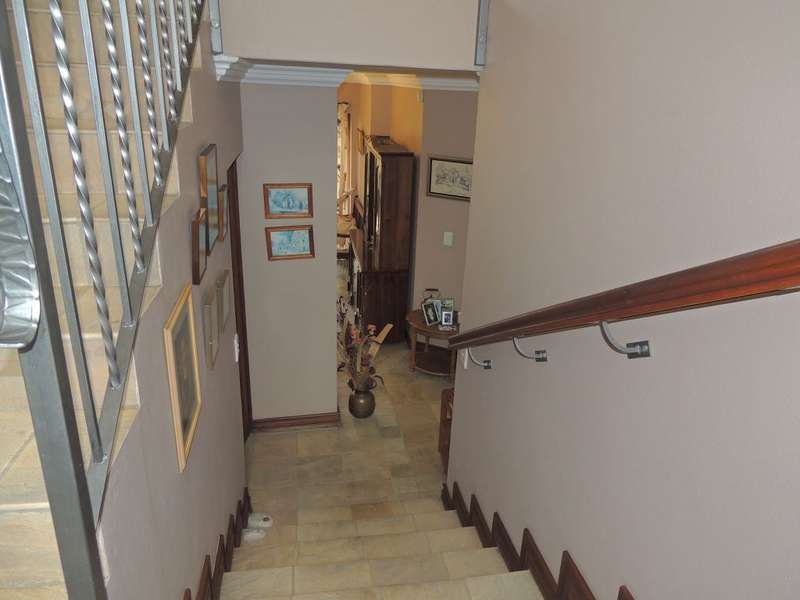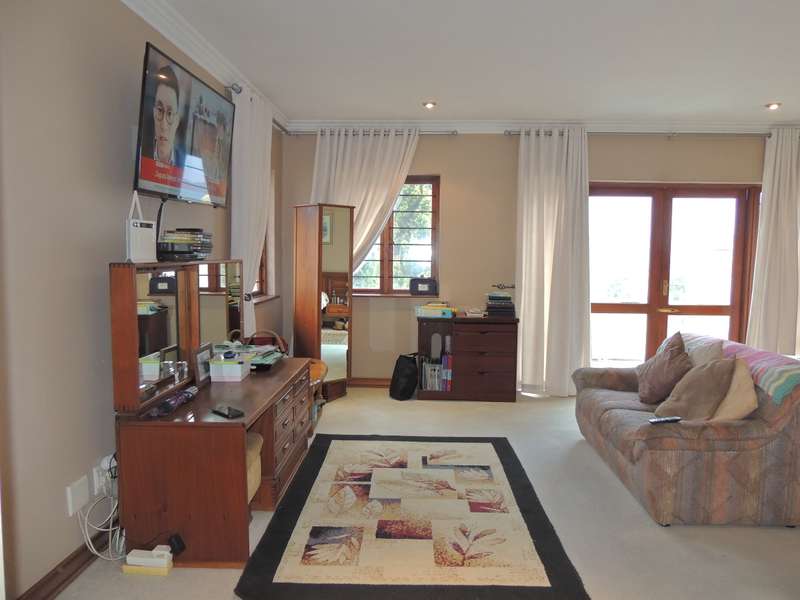 This charming duplex townhouse is located within a lovely estate of only thirty-nine units, offering a peaceful and secure environment. The property sits on a 464 square meter stand, featuring beautiful finishes throughout. Downstairs: The home welcomes you through double wooden doors into a warm and inviting space. The lounge area boasts carpeted flooring and underfloor heating, providing comfort and a cozy ambiance. From here, you have access to a wooden deck, perfect for outdoor relaxation. The remainder of the downstairs area features natural beige slate tiles, enhancing the home’s elegance. The dining room, located nearby, opens up through double wooden doors into a slate-tiled courtyard. The kitchen is equipped with a five-plate gas hob, an eye-level oven, an extractor fan, and ample space for an undercounter appliance and a double-door fridge. The granite countertops add a touch of luxury. From the kitchen, you step into a patio fitted with a built-in braai, electrical points, and serving counters, providing an ideal space for dining and entertaining. Fitted canvas roll-up blinds added convenience and weather protection. A guest loo is also located downstairs for added convenience. Upstairs: Upstairs, the property features three generously-sized bedrooms, all with plush carpeting. The main bedroom is particularly spacious, filled with natural light, and has doors leading out onto a private balcony that offers breathtaking views of the estate and the distant mountains. The en-suite bathroom is well-appointed with a corner tub, towel-warming rack, washbasin, toilet, bidet, and shower, all finished in natural slate for a stylish and earthy feel. The second bathroom offers a bath, basin, toilet, and towel-warming rack. Outdoor Area: The property boasts a well-established, neatly manicured garden that enhances its charm. There is also a wooden hut in the garden, providing additional storage. For parking, there is ample space for four additional vehicles, as well as a double automated garage with room and facilities for a washing machine, including water inlets and outlets. Additional Features: The property offers pre-paid electricity, ensuring full control over your energy usage. This townhouse is a perfect blend of comfort, luxury, and practicality.