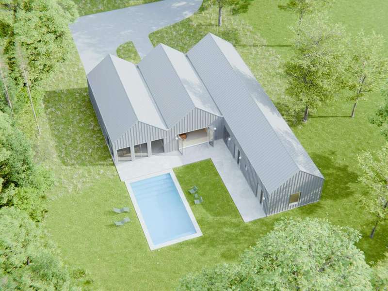 Discover effortless, modern living in this new construction home designed by the 2 x 6 Group. Perfectly situated on over 3 mature wooded acres and just 0.8 miles from the beautiful Union Pier beaches and steps to the new bike and running path, this home is set for 2026 delivery. Designed for today's lifestyle, the home features a sleek silver standing seam metal roof and siding, offering a contemporary yet timeless appeal. The single-level layout emphasizes a seamless indoor-outdoor living experience, with every room opening to nature through Marvin custom sliding doors. A wraparound concrete apron leads you to a stunning 15 x 30 pool, complete with an electric cover for ease of maintenance. The high quality craftsmanship is evident throughout. The home offers wood floors throughout and a fireplace. The expansive porch invites outdoor relaxation, further enhancing the property's connection with its serene surroundings. Inside, the open living space is designed for both comfort and style. Vaulted ceilings add to the sense of space, while the island kitchen is equipped with high-end Fisher & Paykel appliances and matte quartz counter tops, making it perfect for both casual meals and entertaining. With 4 spacious bedrooms, including 2 en suites, every detail has been carefully considered to provide a casual, comfortable yet luxurious living experience. Don't miss your chance to own this exceptional modern retreat in Union Pier - where minimalist design meets natural beauty. Call Lister for more details.