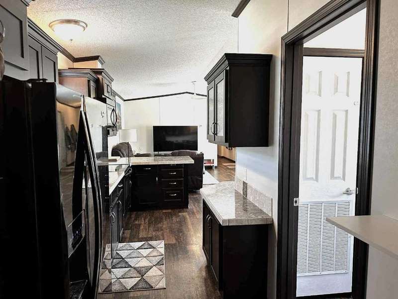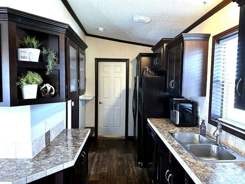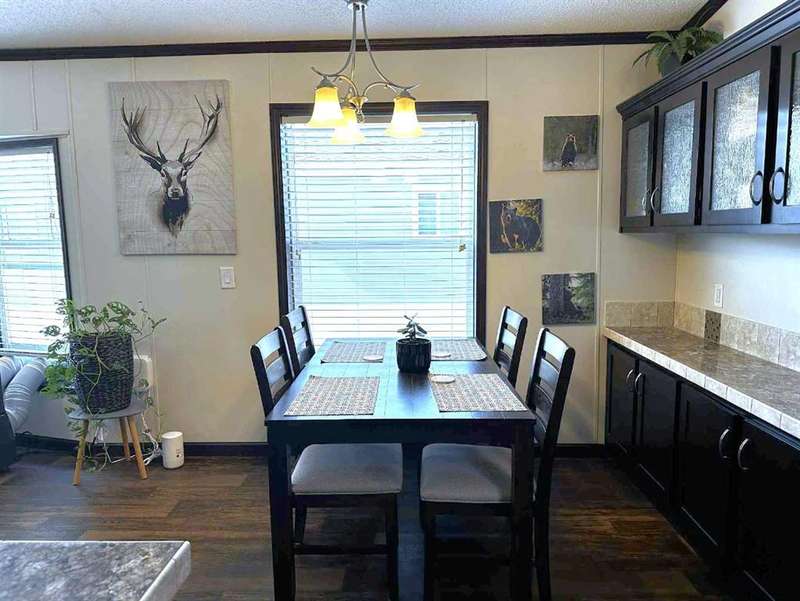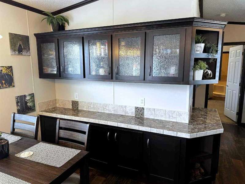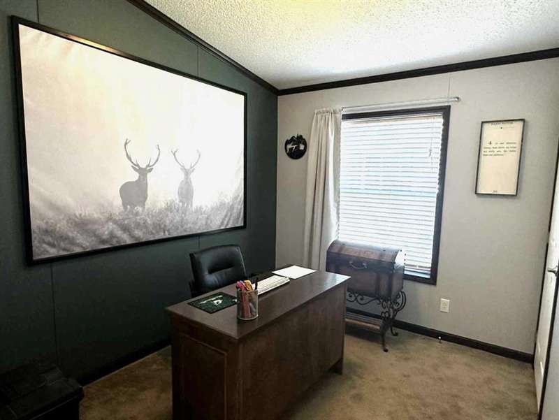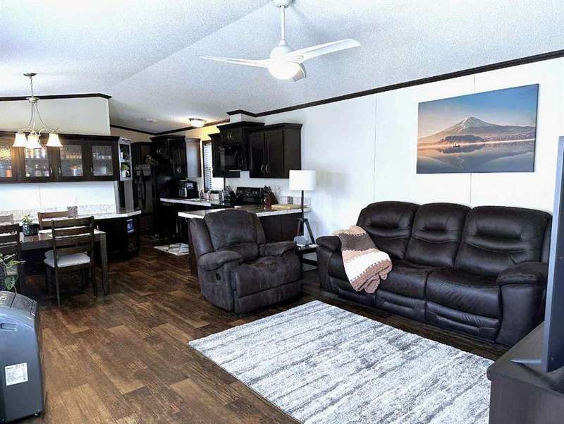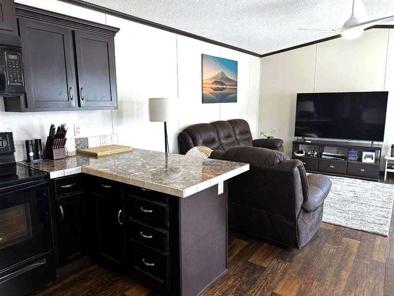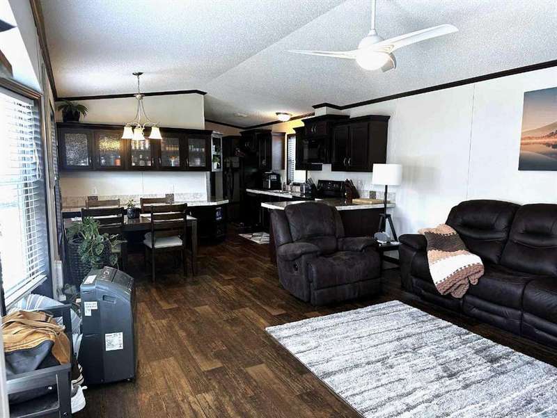 MOVE IN READY home in McKay Ranch! This 3 bedroom 2 bathroom home offers easy main floor living in a well kept bungalow on a quiet street. This open floor plan provides lots of light with big windows and VAULTED CEILINGS. The kitchen is spacious and functional with loads of cabinetry and storage. The primary bedroom is at the back of the home and has a four piece bath with separate shower, large SOAKER TUB and WALK IN CLOSET. The laundry room and second entrance to the home is located just off the kitchen and bedroom as well. At the front of the home there are 2 more good sized rooms and a full bathroom. Outside the yard is partially fenced and has a shed for your lawn mower, garden tools etc. This home is in the new phase of East Blackfalds, is close to walking trails and offers quick access to highway 2A. It has been very well kept and ready for it's new owners! Lot rent includes snow removal and lawn mowing. Pets allowed with park approval.