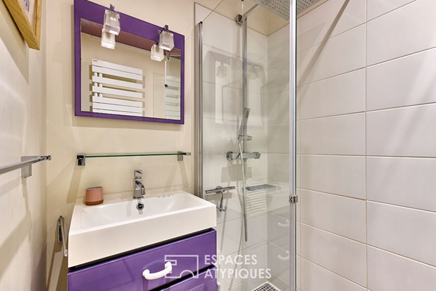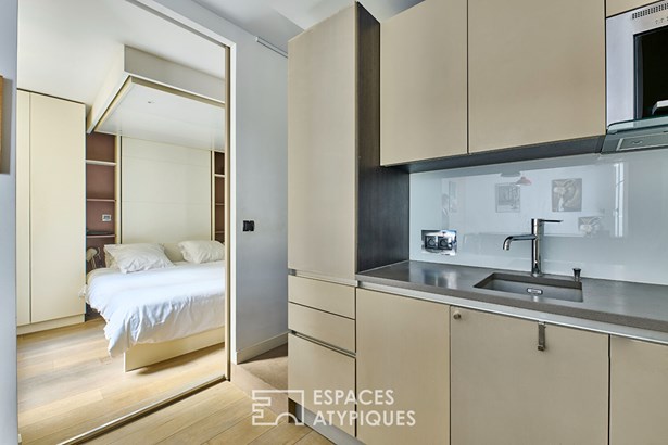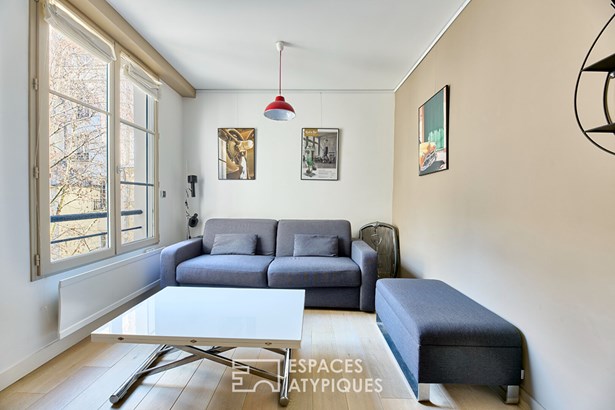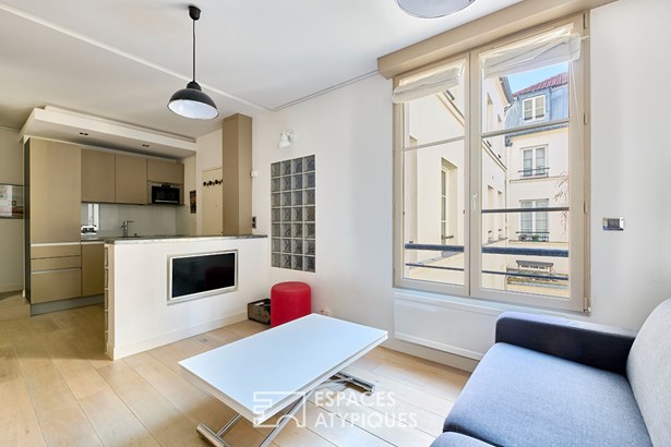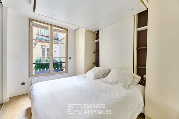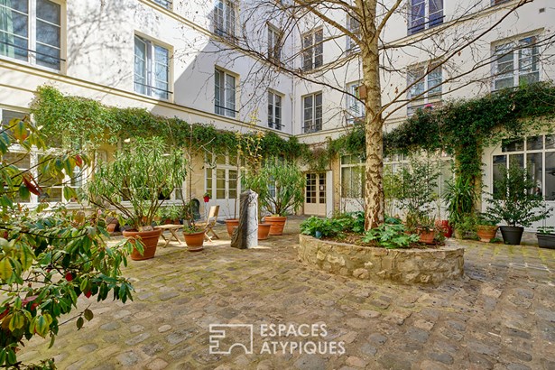 Tucked away at the end of a leafy courtyard with secure access, this property is a true haven of tranquility in the heart of the Marais. Thoughtfully redesigned to maximize space and ensure absolute comfort, it offers a rare sense of serenity.