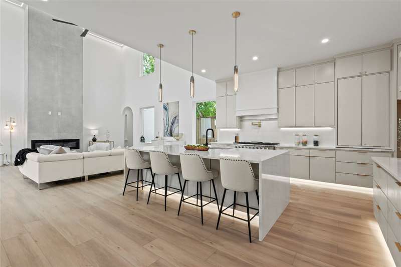Get up to 2% using Preferred Lender towards buyer closing cost or upgrades. Welcome to this architecturally striking custom-built home offering 4,000 square feet of refined living in one of Dallas most dynamic and fast-growing neighborhoods. This 4-bedroom, 3.1-bath residence is a masterclass in design, quality, and comfort just minutes from Downtown Dallas, Trinity Groves, and major thoroughfares. From the dramatic arched hallway to the thoughtfully designed open-concept floor plan, every element of this home exudes sophistication. The chefs kitchen is equipped with premium Cosmo appliances, Custom cabinetry, a Mounted Wine rack, and a wireless pop-up outlet perfect for both daily living and entertaining. Expansive living areas flow seamlessly into the outdoor spaces, where youll find a full outdoor kitchen and gas fireplace ideal for year-round enjoyment. The private theater room sets the stage for elevated movie nights, while ambient LED lighting throughout the home creates a warm and modern ambiance. Retreat to the luxurious primary suite featuring a spa-inspired bath with premium fixtures and high-end toilets throughout the home. Additional features include a Tesla charger, generator plug-in, and integrated smart home functionality. Curated with intention and built with precision, this home offers unmatched luxury, convenience, and style in West Dallas.