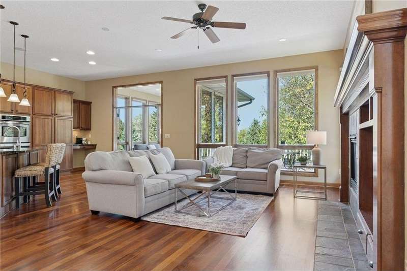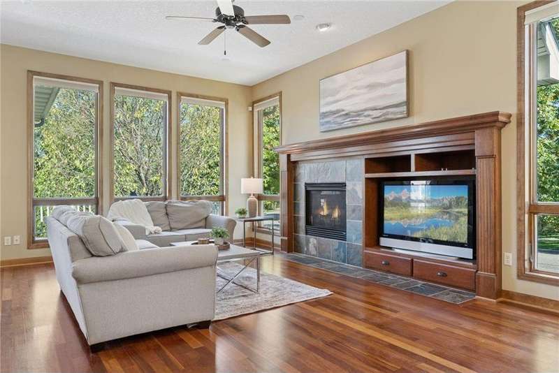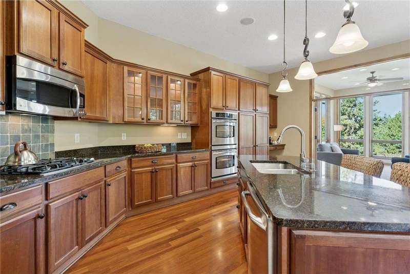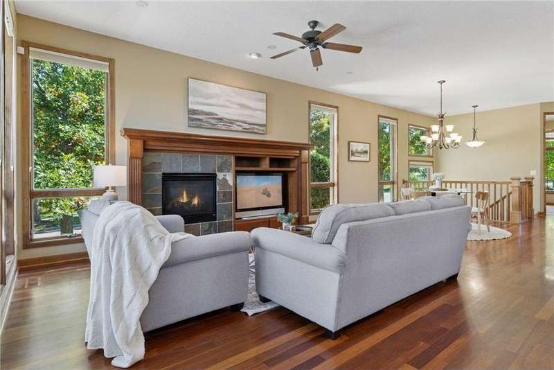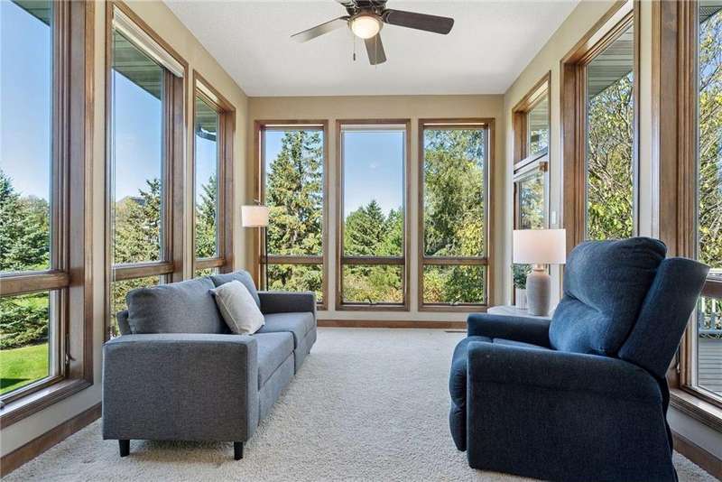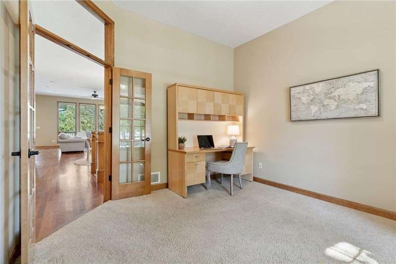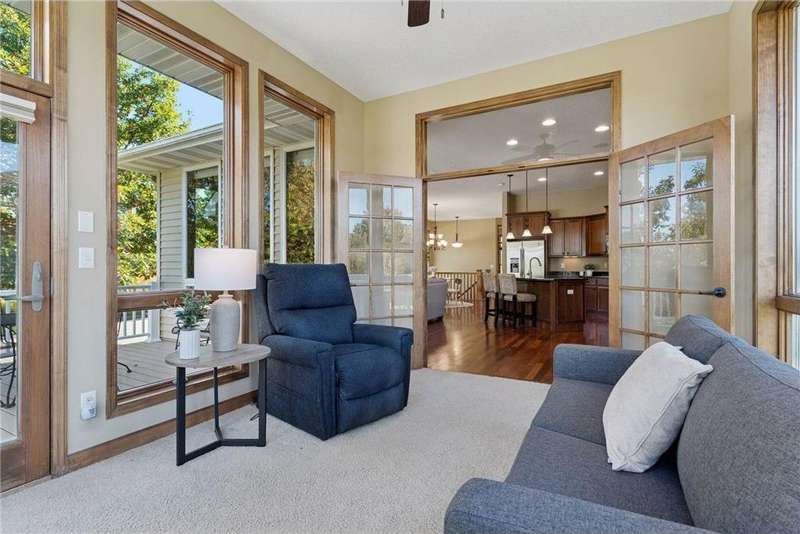 Tucked into a private corner lot just steps from a scenic nature pond and trail system, this immaculate detached townhome offers main-level living, luxury, and comfort. Overlooking the picturesque trails of Bailey’s Arboretum, the home features 10-foot ceilings, Brazilian cherry floors and floor-to-ceiling windows that bathe the interiors in natural light. Designed for easy main-level living, the layout includes a spacious primary suite with a full private bath, a front office, and an open-concept living space. The living room, centered around an elegant gas fireplace, flows effortlessly into the dining area and a beautifully appointed kitchen that is perfect for entertaining or quiet evenings at home. The highlight of the home is the inviting 4-season porch/sunroom, where large windows provide a serene connection to the outdoors. Step onto the maintenance-free deck for morning coffee or summer BBQs in a tranquil setting. The finished lower level adds incredible functionality, offering a large family room-large enough to add a pool table or game area, beautiful wet bar, two additional bedrooms, and a full bath, and storage space. Located in one of Woodbury’s most desirable communities, Bailey’s Arbor, residents enjoy access to private pools, tennis courts, and the best of all-miles of beautiful trails, pond, lush community gardens-all just outside your door.