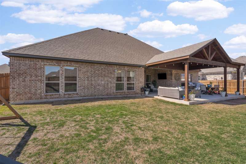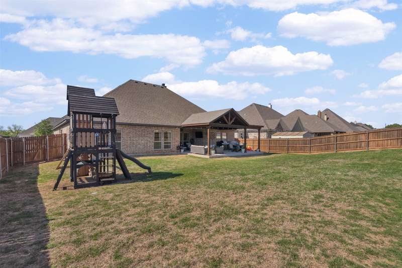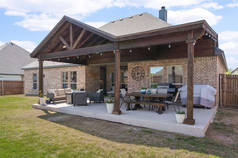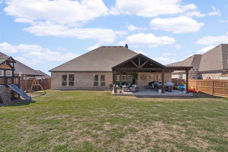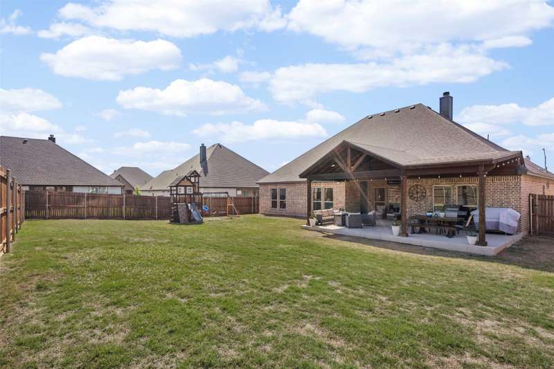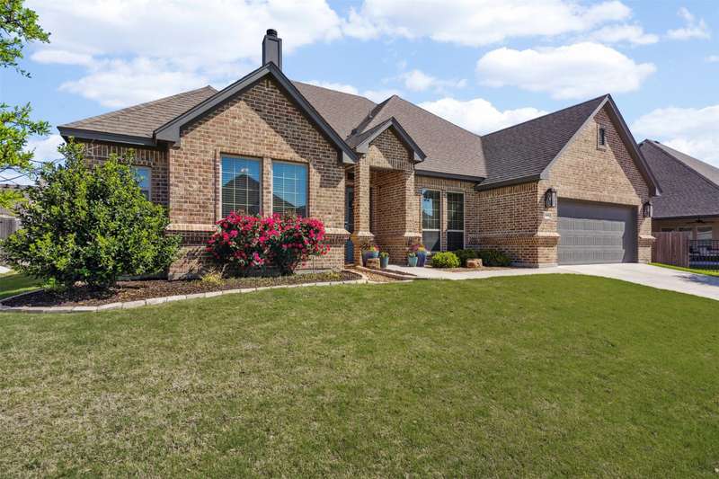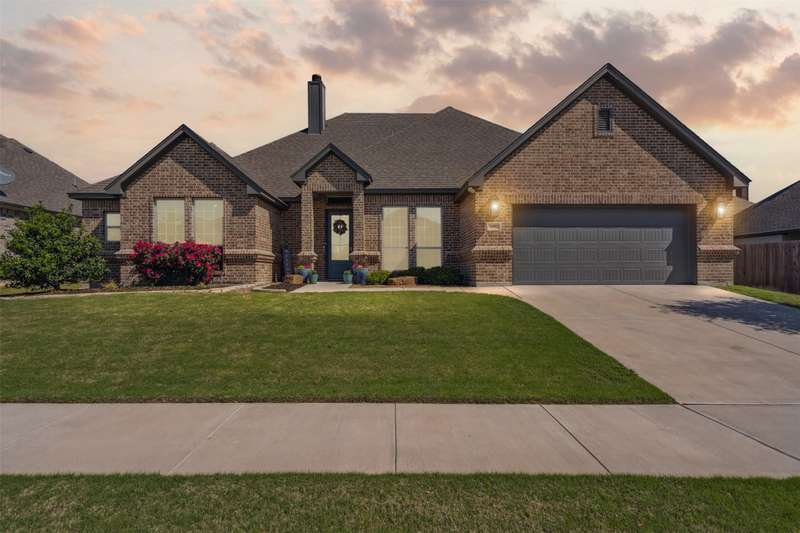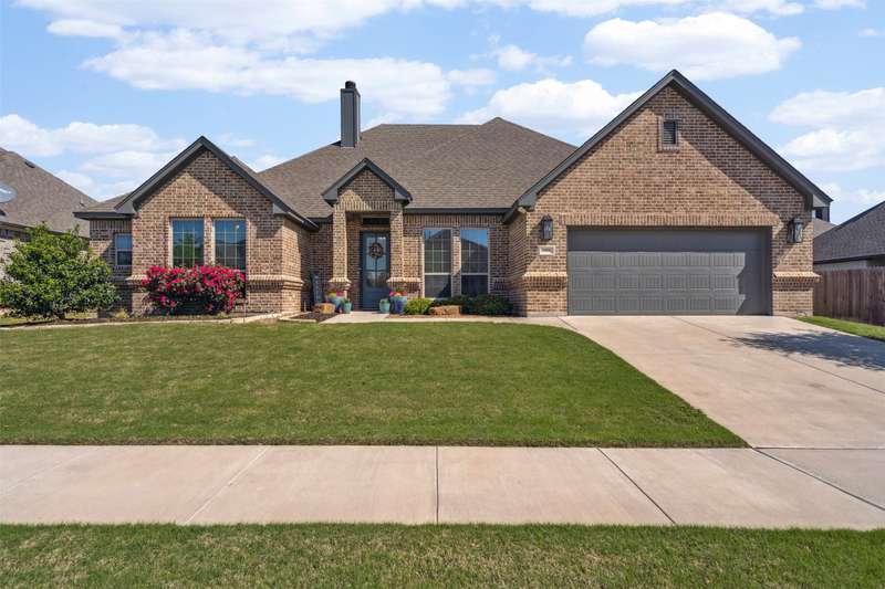 From the moment you step inside, this thoughtfully crafted home feels like the one. Designed with intention and filled with natural light, it blends everyday functionality with elevated finishes across more than 2,500 square feet. Whether you're hosting weekend get-togethers or enjoying a quiet evening under the expansive vaulted patio, this home offers the space, flow, and charm to match your lifestyle.Located in Northwest ISD, the home features 4 spacious bedrooms, 2.5 baths, a dedicated home office, and a versatile bonus room for added flexibility. The open living area is warm and inviting with a wood-burning fireplace, while the kitchen impresses with a large center island, walk-in pantry, ample cabinetry, and an eat-in dining area overlooking the backyard.The primary suite is a relaxing retreat with dual vanities, a soaking tub, walk-in shower, and spacious closet. Split guest bedrooms and a well-appointed laundry room with built-ins make the layout both smart and convenient. Outside, the extended covered patio with vaulted ceilings creates a perfect year-round gathering spot, with a generous backyard offering plenty of room to play or entertain, or add a pool! Welcome to your dream home! 1% BUYER CREDIT - Property financing incentive offered through preferred lender!