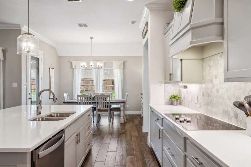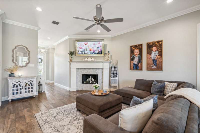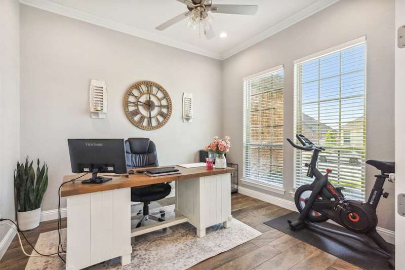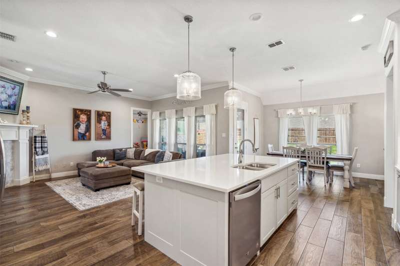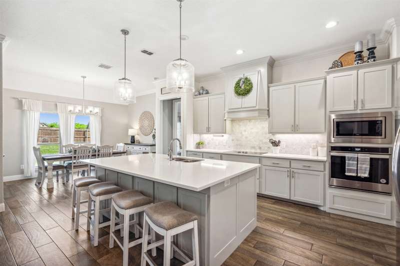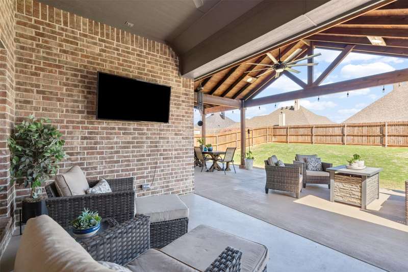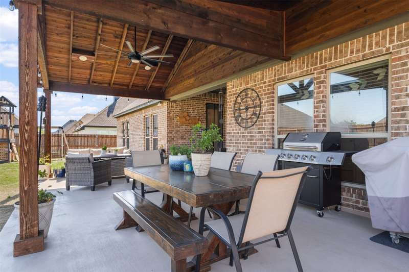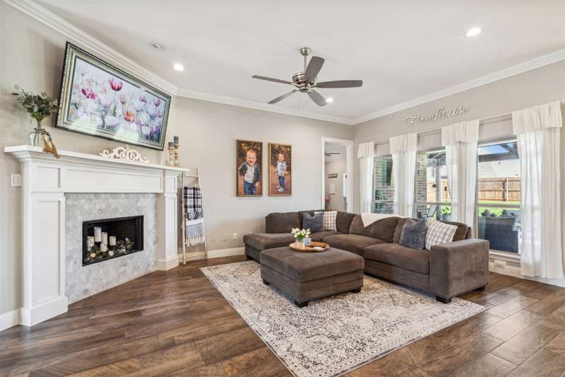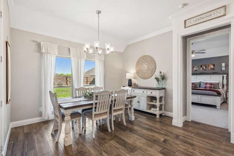 From the moment you step inside, this thoughtfully crafted home feels like the one. Designed with intention and filled with natural light, it blends everyday functionality with elevated finishes across more than 2,500 square feet. Whether you're hosting weekend get-togethers or enjoying a quiet evening under the expansive vaulted patio, this home offers the space, flow, and charm to match your lifestyle.Located in Northwest ISD, the home features 4 spacious bedrooms, 2.5 baths, a dedicated home office, and a versatile bonus room for added flexibility. The open living area is warm and inviting with a wood-burning fireplace, while the kitchen impresses with a large center island, walk-in pantry, ample cabinetry, and an eat-in dining area overlooking the backyard.The primary suite is a relaxing retreat with dual vanities, a soaking tub, walk-in shower, and spacious closet. Split guest bedrooms and a well-appointed laundry room with built-ins make the layout both smart and convenient. Outside, the extended covered patio with vaulted ceilings creates a perfect year-round gathering spot, with a generous backyard offering plenty of room to play or entertain, or add a pool! Welcome to your dream home! 1% BUYER CREDIT - Property financing incentive offered through preferred lender!
