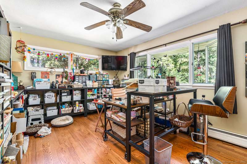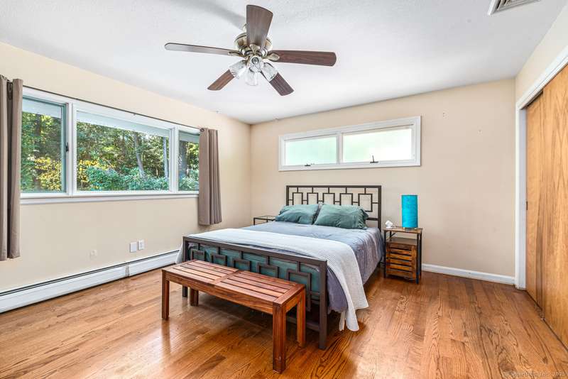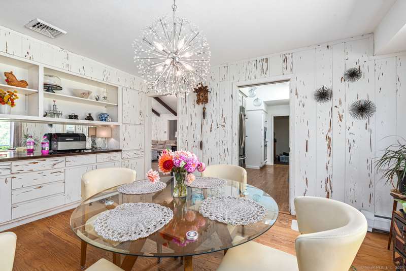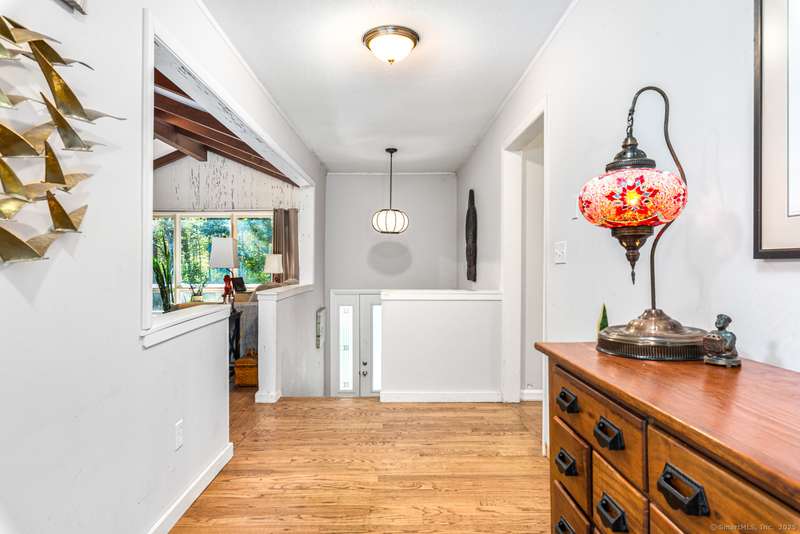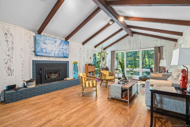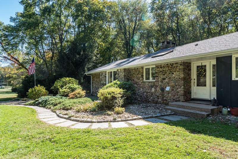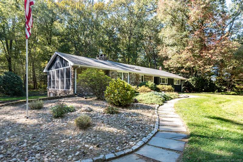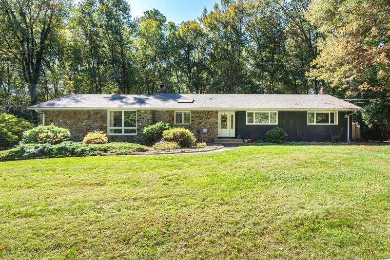 Discover a truly unique ranch-style home on over an acre in one of Cheshire's most desirable neighborhoods. Bright, open spaces with vaulted ceilings create a comfortable flow throughout, while large windows bring in natural light and views of the private, wooded setting. The main level offers three bedrooms, including a primary suite, and the walk-out lower level features a spacious family room with fireplace with insert, bar, and guest suite. With updated baths, and central air, this home blends country charm with everyday comfort-perfect for those seeking character and convenience. A special place to call home.