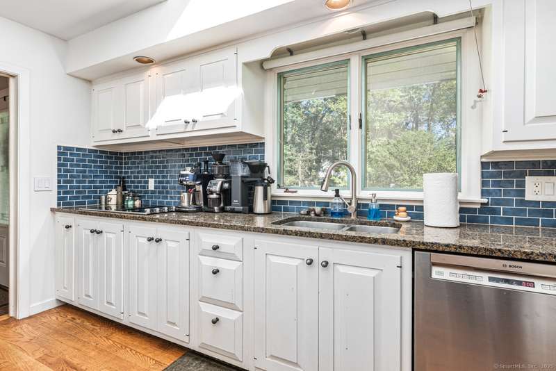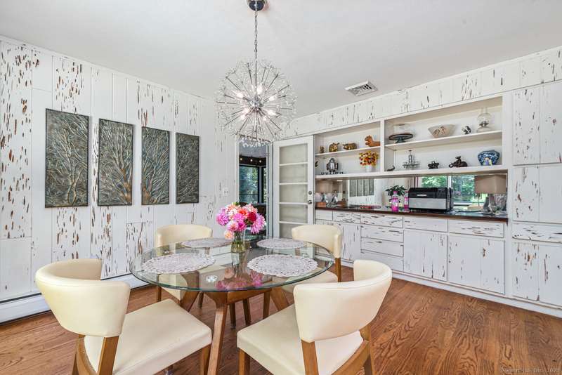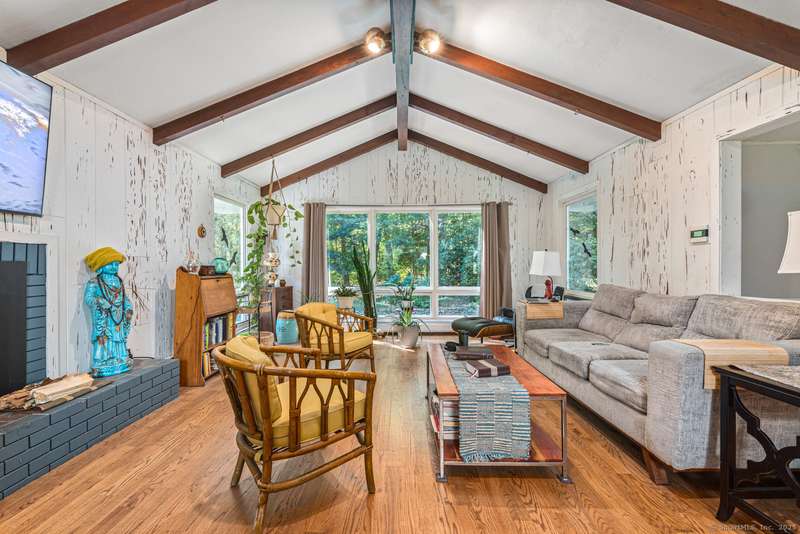 Discover a truly unique ranch-style home on over an acre in one of Cheshire's most desirable neighborhoods. Bright, open spaces with vaulted ceilings create a comfortable flow throughout, while large windows bring in natural light and views of the private, wooded setting. The main level offers three bedrooms, including a primary suite, and the walk-out lower level features a spacious family room with fireplace with insert, bar, and guest suite. With updated baths, a new roof, and central air, this home blends country charm with everyday comfort-perfect for those seeking character and convenience. A special place to call home.