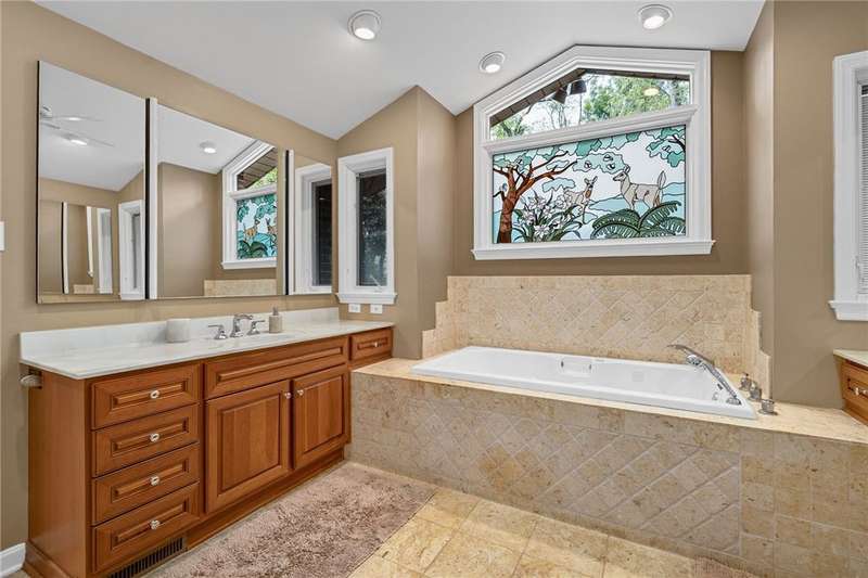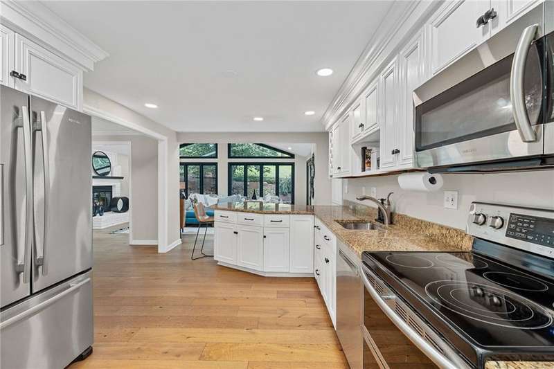 Welcome to 18th-fairway living at St. Clair CC. This upgraded bi-level opens into a spectacular kitchen + great room ? perfect for entertaining. A wall of windows showcases manicured grounds and a glowing glass-stone fire pit. An A-frame patio leads you directly into the master suite.The kitchen features granite counters, stainless appliances, and a breakfast bar. Wide-plank oak flooring with walnut peg detail flows through the living and dining rooms. All bedrooms and baths have Pella windows with built-in shades. The master suite offers a cedar-lined closet, an organized walk-in, and a spa bath with heated jet tub + glass shower.On the lower level: roomy den with a wood-burning fireplace, 4th bedroom, powder room, laundry, and three-car tandem garage. With all-new HVAC, updated systems, and a 2015 roof, this home is essentially move-in ready. Outdoor amenities include a flagstone patio, fire pit, and privacy landscaping ? ideal for sunset gatherings on a championship fairway.