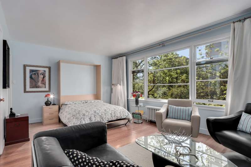 Welcome to your peaceful haven in the vibrant West End - a top floor corner studio nestled in the well-loved SEACREST community. This quiet, light-filled home is part of a thoughtfully managed equity co-op, offering a rare opportunity to own a share in one of Vancouvers most cherished neighbourhoods. Lovingly maintained and full of charm, this cozy retreat offers abundant natural light, vintage appeal, and a true sense of calm. Major capital improvements already completed, including:New 30-year roof (2021) Upgraded attic insulation (2021) New boilers and domestic hot water system (2023), Updated plumbing throughout, modernized electrical panels in units and common areas. Low monthly fee of just $220 covers heat, hot water, and building management. Just steps from shops & restaurants.