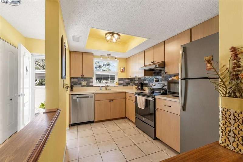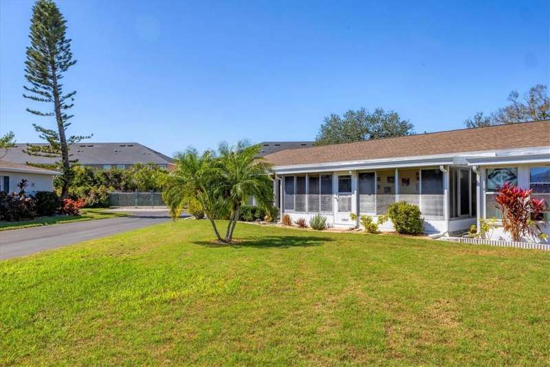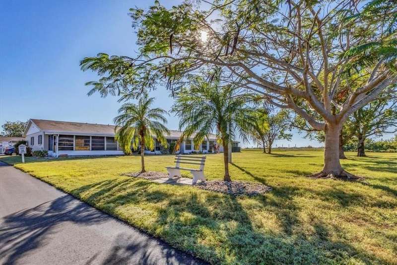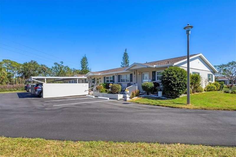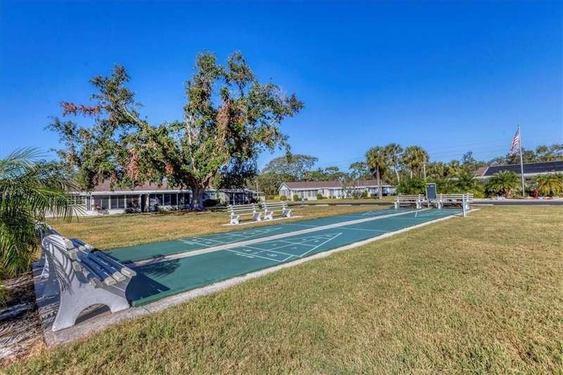Under contract-accepting backup offers. ~ AFFORDABLE AND IN A WONDERFUL LOCATION! ~Come discover Rolling Green! You'll have the pleasure of living in a maintenance free impeccably maintained villa in this 55+ community. The location of this particular home positioned at the very end of the subdivision assures you of peace, privacy and quiet. Solid wood maple cabinetry, stainless steel appliances, an eat-in kitchen nook area, tile backsplash and an additional large hallway pantry closet complement the kitchen that overlooks the dining area, living room and spacious lanai. Furnishings are included. A new ceiling fan and light fixtures have been added along with $3500 invested in NEW HIGH IMPACT SLIDERS accessing the Florida lanai. You'll appreciate the convenience of having an indoor laundry closet which also houses the control panel box and 2014 hot water heater. The guest bath, located in the hallway, offers a new higher toilet, newer vanity and new tile flooring. Storage space, which is always desirable, is available here for your extras in the hallway's two closets. The primary bedroom features newer carpeting within the last year, along with two closets and leads to the private bathroom showcasing a new vanity, light fixture, and tempered shower glass door. Ceramic tile can be found in the kitchen with luxury vinyl plank flooring in the living and dining room and carpeting in both bedrooms. Both bedrooms, bathrooms and the hallway have just been freshly painted in a Natural Linen paint color. The Florida lanai, which features plexiglass windows and new low maintenance epoxy flooring, is very generously sized at 18' x 12' and is sure to become your favorite getaway. New rain gutters have been added and the entire villa has been repiped. You'll have the convenience of a covered deeded parking spot at the entrance, a private mailbox and a charming garden area for your herbs and plants. The roof is approximately 3 years old and the reserves are strong for this well run community which has been recently re-paved with brand new roads. No roof damage was experienced from the storms for this non-flood X zoned neighborhood. Rolling Green Golf Village has a solar heated community pool and shuffleboard along with an on-site handyman available 25 hours a week for community maintenance repairs. The residents here have a great social calendar that you can participate in and are outgoing and friendly. The location is simply spectacular with close proximity to the University Town Center where you can enjoy dining and a myriad of stores to shop. You're also close to the Sarasota/Bradenton Airport and I-75. Rentals are allowed for a 6 month minimum, 2x a year.