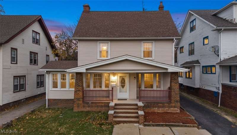 Beautiful move-in ready home in the heart of Cleveland Heights! Discover timeless charm and modern comfort in this beautifully maintained colonial, set on a spacious lot with a welcoming front porch and a large backyard perfect for relaxation or entertaining. Inside, hardwood floors flow through the light-filled living room and formal dining room, complemented by a versatile first-floor sunroom. SEE FLOORPLAN IN PHOTOS. The updated kitchen pairs seamlessly with the home's classic character, while newer windows provide efficiency and peace of mind.Upstairs, you'll find four comfortable bedrooms and two renovated bathrooms. 3 bedrooms on 2nd floor have new laminate flooring, and the private third-floor suite with its own full bath is ideal for guests, work-from-home, master suite, or a quiet retreat. A detached 2-car garage adds convenience and storage. All of this just moments from the Cedar Lee district, shopping, restaurants, schools, parks, library, bakeries, cafes, and local theaters, offering the best of neighborhood living with everyday amenities close at hand. 10 minute drive to University Circle, home of the CWRU, The Cleveland Clinic, University Hospitals, and world class museums and institutions. This fantastic home is point of sale compliant, and a 12 month home warranty is included for peace of mind.