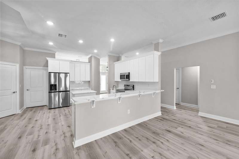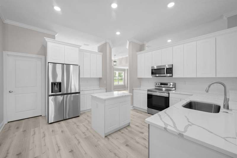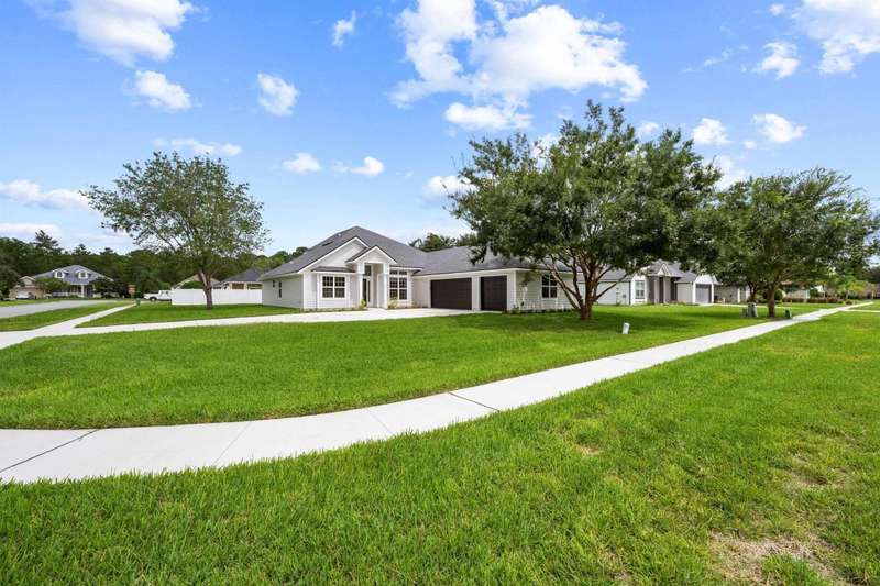 This exceptional new-construction two-story home offers 4 bedrooms, 3 baths, a bonus room, and an oversized 3-car garage, all thoughtfully designed with elegant finishes throughout. The gourmet kitchen is a chef???s dream, featuring quartz countertops, upgraded cabinetry, stainless steel appliances, a separate pantry, center island, and raised snack bar that flows seamlessly into the breakfast area. Perfect for entertaining, the open kitchen connects to the casual dining space and the expansive great room with soaring ceilings and direct access to the covered lanai and outdoor kitchen. Retreat to the spacious owner???s suite, complete with a walk-in closet and a spa-inspired bath featuring dual vanities, a tiled shower, and a Roman tub. Additional highlights include three guest bedrooms, two full baths, a separate laundry room, and plenty of extra parking. Set on an oversized corner lot, this home offers a private backyard, covered lanai, and numerous upgrades including full landscaping with programmable irrigation, a termite bond, 30-year architectural shingle roof, and a 2-10 Home Buyers Warranty. Located in St. Augustine Shores, an established community with top-notch amenities ??? enjoy walking and biking trails, lakes, an 18-hole golf course, clubhouse, intracoastal dock, fishing, and community pool ??? all just minutes from historic downtown, shopping, schools, and the beach.