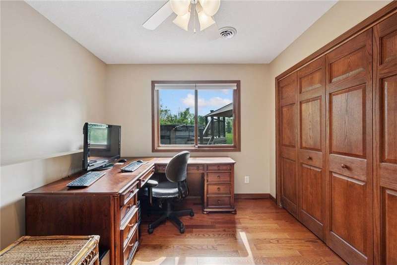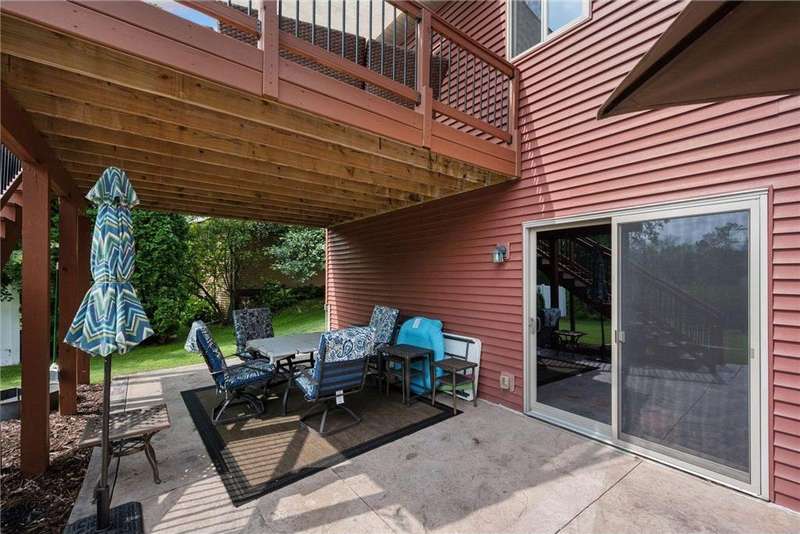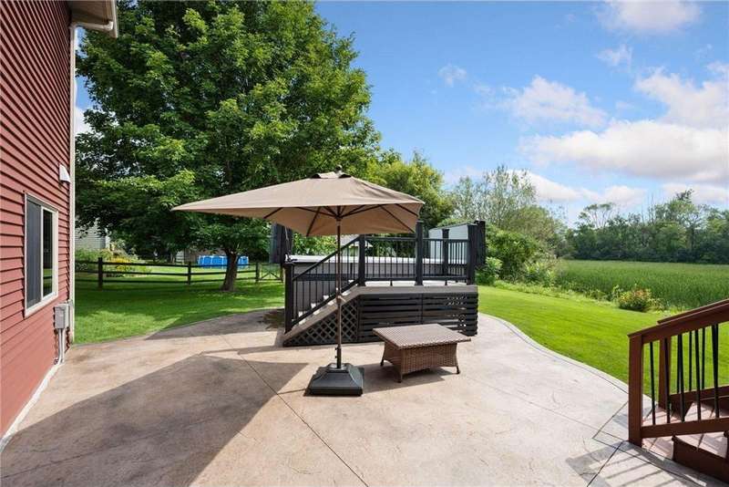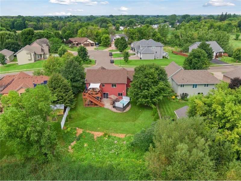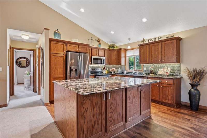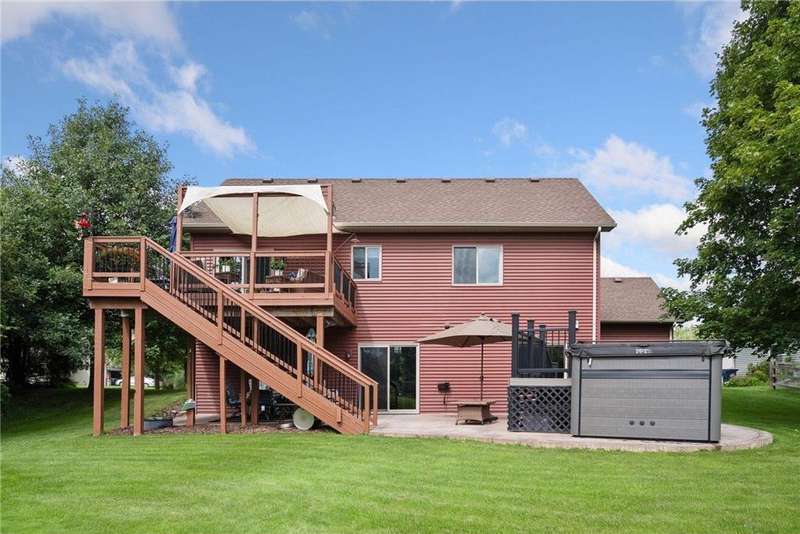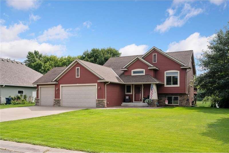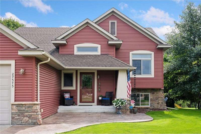 Welcome to this beautifully maintained 4-bedroom, 2-bath split-level home nestled on nearly 0.4 acres of lush, green acres in scenic Chisago City. With no backyard neighbors and serene views between Chisago Lake to the East and Green Lake to the West, this home offers the perfect blend of privacy, nature, and lifestyle. Enter an open-concept main level featuring a soaring vaulted ceilings that enhance the natural light and spacious feel throughout. The heart of the home is the chef’s kitchen, featuring ample cabinetry, stainless-steel appliances, granite countertops, a large center island and seamless flow into the informal dining room. Step out onto the elevated deck, ideal for outdoor BBQs, enjoying your morning coffee or relaxing while overlooking the private backyard. A warm and inviting living room offers the perfect place to gather or unwind. The generously sized primary bedroom offers a walk-in closet, with an additional bedroom and a shared full bath completing the space. The expansive lower-level great room is a true standout, showcasing a stunning stone gas fireplace flanked by built-in shelving, creating a cozy retreat for gatherings or quiet evenings. An adjacent game room offers even more versatility. You will find two additional bedrooms, one which could double as a home office, playroom, or hobby space, and a 3/4 bathroom, perfect for guests or growing households. Step outside through the walkout and enjoy an outdoor patio space ready for the cool Minnesota summer nights. Set in a welcoming community near parks, schools, and all that charming Chisago City has to offer, this home blends relaxed lake-town living with room to grow. The home inspection has been completed for you. See supplements for photos, tour, Matterport Floorplan, and more.