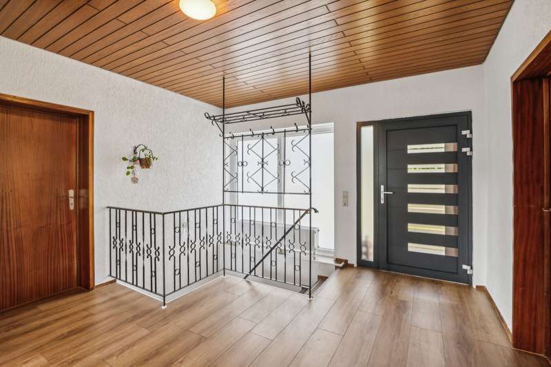 For sale is a well-kept detached house that was built in 1977 on a spacious plot of approx. 575 m². With a living area of around 158 m², this property offers enough space for a family. Thanks to continuous modernization, most recently in 2019, the house is in an attractive condition. Upon entering the house, you are greeted by a large entrance area that leads directly into the heart of the property. The room layout comprises five rooms, including three bedrooms, which offer a wide range of possible uses. The fittings include high-quality parquet flooring, which gives the interior a warm and inviting atmosphere. The bathroom has a contemporary design and features a floor-to-ceiling shower to ensure a comfortable start to the day. New double-glazed windows were installed in 2019, which not only provide excellent insulation but also a pleasant living atmosphere. These contribute to the energy efficiency of the property, as do the gas heating and solar water heating system, which were installed in 2012. The living space extends out onto a balcony, which offers a view of the surrounding area. Here you can spend relaxing hours and enjoy the benefits of the location. The garden offers additional space for leisure activities and natural recreation. The house also has two parking spaces, which offer plenty of room for your vehicles. The location of the house is ideal for both families and professionals, as it offers good connections to public transportation and various supply options. The modernizations in 2012 and 2019 have helped to increase the value of the property and maintain the quality of living. In particular, the installation of new windows and the use of the solar system make the house an environmentally friendly and future-proof investment. Overall, this detached house offers a solid basis for comfortable living, with a well thought-out room layout and fittings that meet today's standards. The well-kept condition and the harmonious combination of modern fittings and classic design make this property an attractive choice for potential buyers. If you would like more information or would like to arrange a viewing, our team will be happy to assist you. Experience the many possibilities offered by this house and see its advantages for yourself.