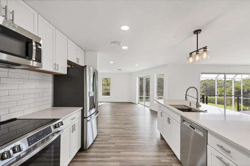 Discover Creekfront Living in the Heart of Sarasota. Discover a beautifully renovated waterfront home along the peaceful banks of Philippi Creek, perfectly situated in the center of Sarasota and just minutes from Siesta Keys world-famous beaches. From your own backyard, you can kayak or paddleboard down the river, fish for tarpon and snook, or simply relax and watch manatees glide by. Even better, paddle over to the nearby Phillippi Creek Oyster Bar for a casual waterfront lunch. This versatile residence offers 4 bedrooms, 3 bathrooms, and a 2-car garage with an additional storage bay. The main level features a split floor plan with a spacious primary suite with en-suite bath on one side, and two comfortable guest bedrooms with a shared full bath on the other. In the center of the home is a great room focused around the new kitchen with quartz countertops, white cabinets and large island that is flooded with natural light from the sliding glass doors that frame your large yard and water views. The lower level provides endless possibilities ideal as an in-law suite, guest retreat, or additional living space. It includes a full kitchen, bedroom, bathroom, and a large flex area perfect for a family room and dining room or game/entertaining area. Outdoor living is at its finest with a two-story screened lanai and balcony overlooking the expansive backyard and the creek. A paver patio, putting green, and ample yard space create the perfect environment for both entertaining and quiet relaxation. This one-of-a-kind waterfront home is being offered for rent, with a minimum 6-month lease.
