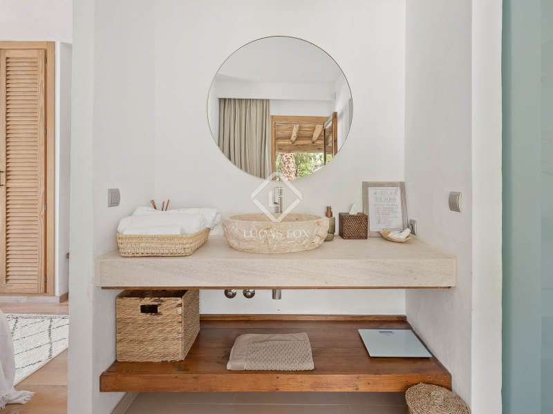 Nestled in the scenic hills near Cala Tarida, Ibiza, this exquisite villa offers an unparalleled retreat for those seeking luxury, tranquility, and captivating Mediterranean vistas. With its sleek modern design, expansive living spaces, and a wealth of top-notch amenities, this property epitomizes the epitome of contemporary coastal living. As you approach the villa, you'll be greeted by beautifully landscaped gardens, creating a sense of serenity and privacy. The spacious outdoor area beckons you to unwind and enjoy the remarkable surroundings. Take a dip in the inviting large swimming pool or relax on the sun-kissed terrace. For outdoor enthusiasts, the villa boasts a "petanque" area, allowing you to engage in a friendly game while enjoying the refreshing sea breeze. Additionally, a playground area provides a space for children to play and explore, ensuring that every family member can create lasting memories. Step inside, and you'll be immediately captivated by the open-concept living area, flooded with natural light from large floor-to-ceiling windows. The stylishly appointed interiors boast a seamless blend of modern aesthetics and comfort, featuring high-end finishes, clean lines, and a neutral color palette. The generous living room and dining area create a seamless flow, ideal for entertaining family and friends. The villa comprises seven generously sized bedrooms, each designed to provide a peaceful sanctuary. The master suite is a true oasis, complete with a private terrace, where you can wake up to the gentle sound of the waves and soak in the breathtaking sunrise. The en-suite bathrooms are elegantly designed, featuring sleek fixtures and luxurious amenities. A modern, fully equipped kitchen awaits those who enjoy culinary endeavors. With premium appliances, ample storage, and a central island, this space is as functional as it is aesthetically pleasing. It opens up to a charming outdoor dining area, perfect for al fresco meals and intimate gatherings. The landscaped garden surrounds the villa, adding a touch of natural beauty and tranquility. Imagine strolling through the fragrant flora, finding your own private nook for relaxation and contemplation. Additionally, the villa offers a range of amenities for relaxation and entertainment. A private gym provides a space for maintaining an active lifestyle, while a home cinema room offers a luxurious setting for movie nights. For added convenience, there is also a dedicated office space, ideal for remote work or personal projects. Located near Cala Tarida, known for its idyllic beaches and captivating sunsets, this villa offers a peaceful and sought-after location, while still being within easy reach of Ibiza Town and the island's vibrant attractions. This exceptional villa represents a unique opportunity to indulge in the Ibiza lifestyle, where modern luxury meets natural beauty. Whether it's unwinding by the pool, enjoying a game of "petanque," or watching your children play in the playground, this property provides a true haven of sophistication, relaxation, and outdoor enjoyment. Don't miss your chance to make this extraordinary villa your own and embrace the ultimate Mediterranean living experience