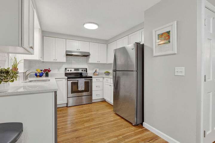 Come see this terrific townhouse boasting affordability, style and updated amenities. The kitchen was fully renovated with white cabinets, stainless appliances and lovely quartz counter tops. While cooking you can easily see out past the patio and enjoy a pretty landscape which is designated open space. Bedrooms all have closet systems that will keep you organized and make your friends envious. The bathroom was updated and is quite spacious. A new high efficiency gas boiler went in 1 yr ago. Another cool bonus is that you have room to expand on the basement level where framing was started along with some mechanicals & lighting too. Well located within close proximity to many of the hip So Po amenities as well as main roads for commuting & traveling. Oh and your furry friend is welcome here too. So come on over and check it out!