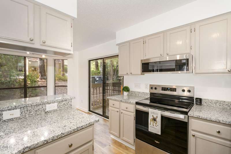 Don't miss this lovely first-floor move-in-ready condo in a highly sought-after Cary location. This 2-bedroom/2-full-bath unit features brand-new stainless steel appliances, granite countertops, stylish lighting, fresh paint, and beautiful new LVP floors throughout the home. Spacious primary bedroom with an ensuite featuring a walk-in closet and a private patio area to enjoy your morning coffee. Great layout with ample closet space, storage, and in-unit laundry. Access to the Farmington Woods greenway right outside your front door. Dues include water, sewer, and garbage. Walk to Trader Joe's, Barnes & Noble, Starbucks, and several restaurants, all while being less than 2 miles from downtown Cary, with access to US1 and I-40.