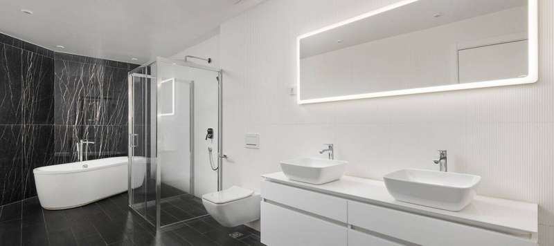 Premium kitchen (Nobilia/Bosch) and bathroom fittings (V&B, Catalano, HansG), ceramics, and flooring (Florim, Porcelanosa, and natural stone) are used throughout. Living areas and bathrooms with underfloor heating recessed AirCon and ventilation in ceilings.