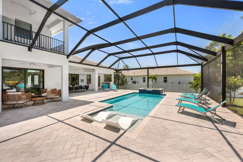 Indulge in the epitome of coastal living in this exquisite new residence ideally situated within the esteemed Estates area of Marco Island. This impressive two-story home boasts four generously sized bedrooms, a convenient three-car garage provides ample parking, while the expansive outdoor living space features an oversized lanai with a pool, a tranquil spa, and an outdoor kitchen with a built-in grill, creating an unparalleled setting for al fresco dining and entertaining. Inside, soaring ceilings amplify the bright and airy atmosphere, seamlessly connecting the gourmet island kitchen with the inviting family and dining area. Enjoy effortless access to a curated selection of dining and shopping destinations. Furthermore, residents will appreciate the proximity to Marco Island's renowned Mackle Park and its pristine white sand beaches, offering a wealth of recreational opportunities just moments away.