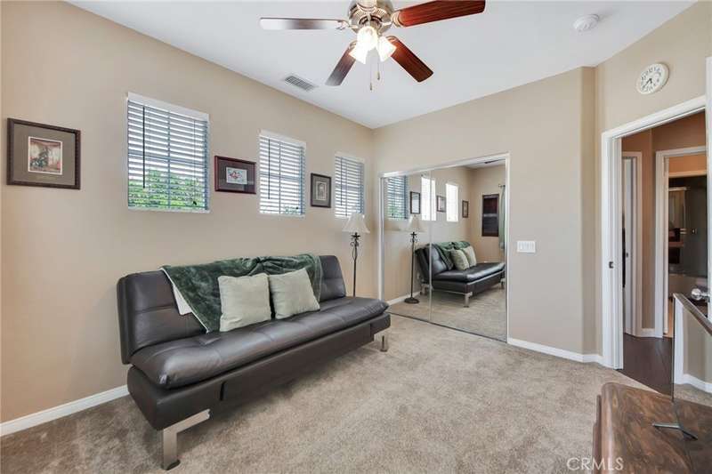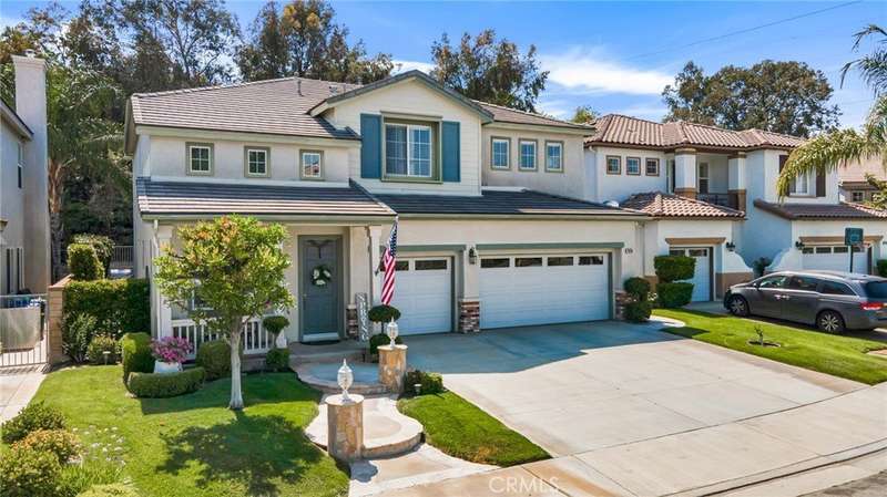 Look no further! Located in the most treasured area of Valencia Copperhill with No Mello Roos and Low HOA! This home offers a bedroom and shower downstairs. The heart of the home is an open concept gourmet kitchen with a spacious island, S/S appliances, breakfast nook and counter great for entertaining along with a walk-in pantry. The adjacent family room offers a rich balance of surround sound, a cozy fireplace and ceiling fan. The second floor hosts the grand primary suite including a large walk-in closet, large in suite bathroom with separate sinks and a walk-in shower. Down the hall you have 3 more bedrooms all with ceiling fans and mirrored wardrobe closet doors. The 2nd floor also features a built in office/tech area, laundry room and walk-in linen closet. Also includes a whole house fan, heating and air conditioning. Step into the tranquil and beautifully manicured back yard to enjoy your evenings with the built in natural gas fire pit. The built like in BBQ offers a mini fridge and grill. The HOA amenities offer a pool, spa, play area and BBQ/Picnic area for all to enjoy. Walking distance to Valencia High. Conveniently located near the freeway, shopping, dining and miles of walking/biking trails.