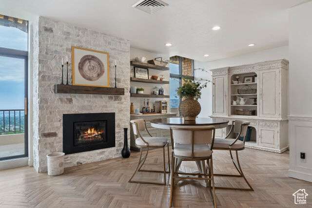Introducing Salt Lake City's Premier Penthouse Retreat. Perched above the city with sweeping views of Donner Park, the Wasatch Mountains, and the Salt Lake skyline, this extraordinary penthouse at Donner Towers offers a rare blend of timeless design, elevated comfort, and cosmopolitan ease. From the marble-inlaid foyer to the floor-to-ceiling windows, every inch of this residence has been thoughtfully crafted. The living and dining spaces are wrapped in glass, immersing you in Utah's natural beauty from sunrise to sunset. Crisp architectural lines, warm wood finishes, and elegant lighting fixtures set a refined yet inviting tone, sophisticated but never stiff, utterly livable. At the heart of the home, a meticulously designed kitchen pairs sculptural beauty with exceptional performance. Custom Wood Mode cabinetry in Deep Ice and Soft Carbon Matte finishes provides dramatic contrast and subtle texture. A rift-cut white oak island is topped with leathered Taj Mahal quartzite-a velvety, veined surface that invites both daily use and celebration. Premium Wolf and Sub-Zero appliances are seamlessly integrated, ensuring that the space serves the needs of casual cooks and avid entertainers alike. Gold-tone hardware and a hand-forged refrigerator handle add artisan detail, while a luminous marble backsplash evokes a constellation of stars. Private spaces unfold with equal care. A cozy den is tucked behind 18th-century carved Balinese doors, adding character and global craftsmanship to the home's modern narrative. It's the kind of space that invites both solitude and togetherness-generous in form, comforting in feel. Whether it becomes a reading room, music space, or intimate gathering spot, the den offers a rare blend of presence and ease. The primary suite is a true sanctuary, anchored by nearly uninterrupted glass that frames the mountains, Great Salt Lake, and city lights. A fireside seating area invites quiet mornings, while the spa-style bath balances rich marble finishes with calming forest-green cabinetry. His and hers walk-in closets feature custom cherry interiors and aromatic cedar lining, elevating daily routines with thoughtful luxury. Even practical elements-like the laundry room and hall bath-mirror the homes overall aesthetic: clean, cohesive, and quietly refined. Curated but never cold, elevated yet grounded, this penthouse embodies the rare balance of elegance and livability. Steps from the city's cultural heart and nestled in the calm of Emigration Canyon, it's more than a home-it's a mountain-framed retreat where every hour brings something beautiful into view. Features Include: Integrated Wolf range and Sub-Zero refrigeration and double ovens Custom Wood Mode cabinetry with artisan finishes Rift-cut white oak island topped with leathered Taj Mahal quartzite Owner-managed elevator access, lock-and-leave lifestyle with privacy, convenience, and low maintenance Private elevator lobby and 48 custom mahogany entry door Floor-to-ceiling glass with panoramic views Primary suite with fireplace, spa bath, and dual cedar-lined closets Energy efficient hot water recirculation pump Wrap-around outdoor terrace with 360 mountain, City, Lake, Valley, and skyline views Four (4) parking stalls conveniently situated adjacent to the entry and private elevator access Two (2) large private, secure storage rooms, each approximately 100 square feet Controlled access building security Seasonal outdoor pool, spa, and entertaining patio