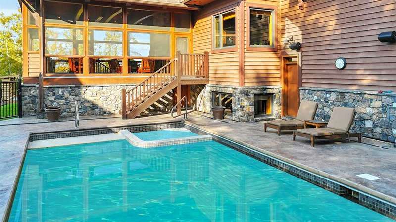 Welcome to your luxury waterfront retreat on the coveted shores of Honeymoon Bay in Sylvan Lake! This prestigious 7-bedroom, 5-bathroom estate spans over 6,900 sq ft of masterfully crafted living space and sits on 87 feet of prime lakefront. From the moment you enter the grand foyer, you’re greeted with warmth and sophistication — featuring timeless post and beam architecture, 100-year-old specialty oak flooring, and exceptional custom stonework. The sun-drenched great room is truly the heart of the home, offering breathtaking views of the lake. Entertain in style with a formal dining room that flows seamlessly into a chef-inspired kitchen equipped with a stunning 9-ft granite island, WOLF gas range, built-in commercial fridge/freezer, and dual dishwashers. The upper-level primary suite is your private sanctuary, featuring a large walk-in closet and a spa-like ensuite with jacuzzi, shower, and dual vanities. Step into the inviting three-season screened in porch off the kitchen—complete with a wood-burning fireplace, bar, and professional grill—perfect for entertaining. Just outside, your private heated pool area offers total privacy, a convenient pool house room, and direct access to the beautifully landscaped backyard. Updated landscaping includes new fencing, a cozy fire pit area, and a charming woodshed. From your private dock, set off for a day on the lake, or enjoy a quiet evening under the stars. Upgrades include a new 5-ton central A/C system, HVAC, hot water heater, commercial-grade Reverse Osmosis system, and updated security and Sonos sound systems. With a triple in-floor heated garage, this exceptional lakefront property offers an unparalleled lifestyle of comfort, privacy, and lakeside luxury.