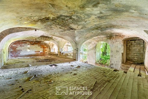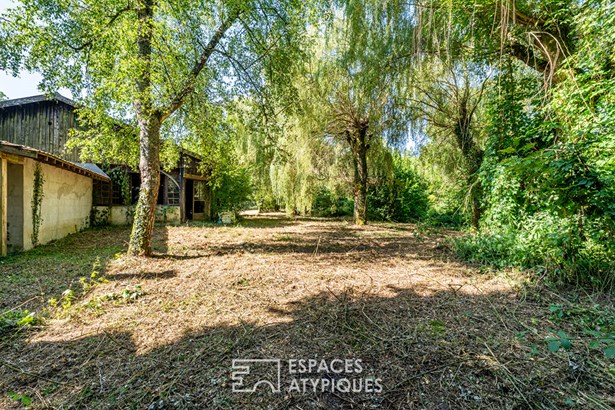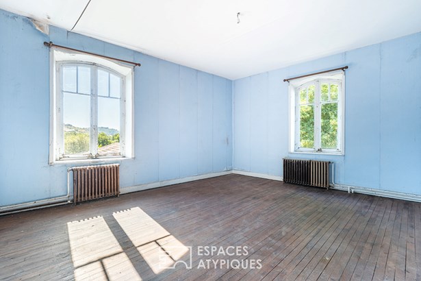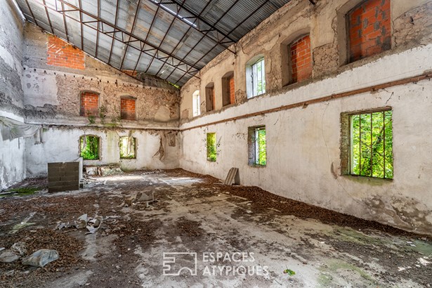 The interior volumes, entirely to be reinvented, leave room for great freedom of layout. The main house, approximately 250 sqm on two levels, offers a sober and authentic architecture to be highlighted. The small house adjoining the property, 50 sqm on two levels, could become a reception area or independent accommodation. The wood and stone workshop and former factory, characterized by high ceilings, generous volumes, and large openings, are attractive for their potential for expansion or transformation into a living space or artistic space.