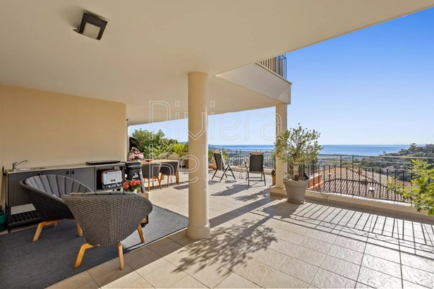 Located on the 4th floor of a high-standard residence, this superb apartment stands out for its stunning sea view and spacious sunny terrace.?In excellent condition, it features an entrance with living room and open kitchen, 2 bedrooms, and a bathroom. The design is contemporary, with an elegant and refined style.?A cellar and 2 parking spaces on the ground floor complete the property.?The residence offers a beautiful swimming pool, 2 tennis courts, and a live-in caretaker.