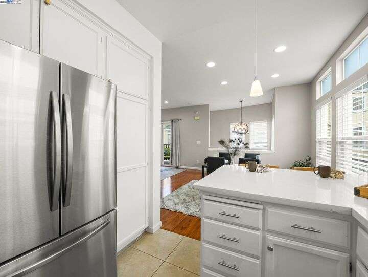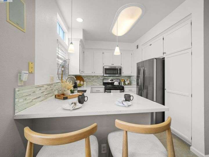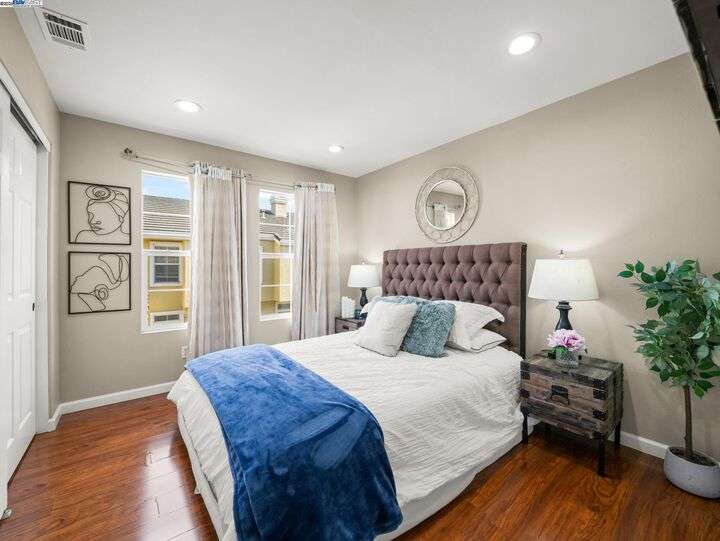 Bright Corner Townhome in Gated Fremont Community,a stylish and well-maintained 2 bed, 2.5 bath corner townhome located in the highly sought-after gated community in Fremont. Offering 1,174 sq ft of light-filled living space, this home combines comfort, privacy, and prime location in one of Fremont’s most convenient neighborhoods.The open-concept main level features hardwood flooring, a spacious living and dining area, and a beautifully updated kitchen with quartz countertops, glass tile backsplash, and stainless steel appliances. A convenient half bath is located downstairs for guests. Upstairs, you'll find two generous bedrooms and two full bathrooms, offering flexibility for families, roommates, or a dedicated office setup.Additional features include a 2-car attached garage, in-unit laundry, central A/C, and updated systems for peace of mind. Being a corner unit, the home gets excellent natural light and added privacy.HOA community offers gated security, a swimming pool, clubhouse, landscaped grounds, and ample guest parking — all for a low HOA of approximately $295/month.Just minutes from BART, major freeways (880/680/84), Pacific Commons, Tesla, and great schools — this move-in ready home is ideal for commuters,first-time buyer or investors (with no rental restrictions).