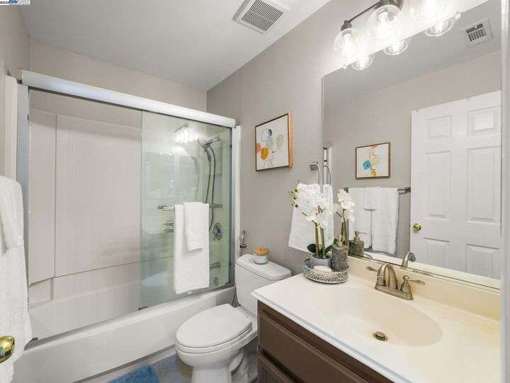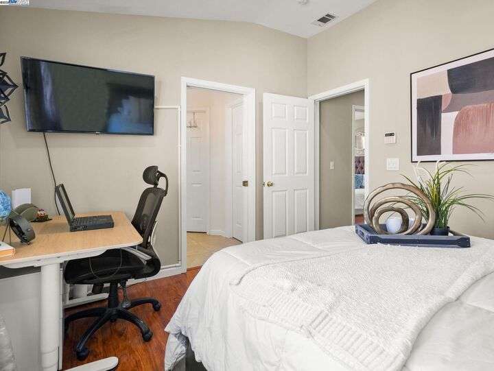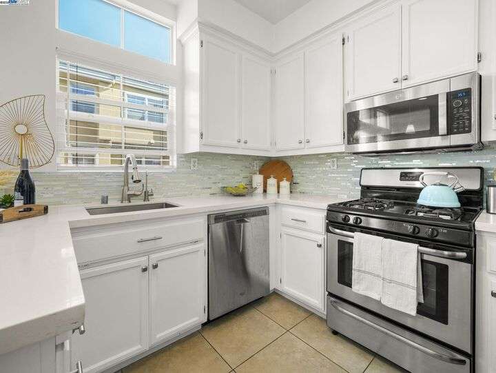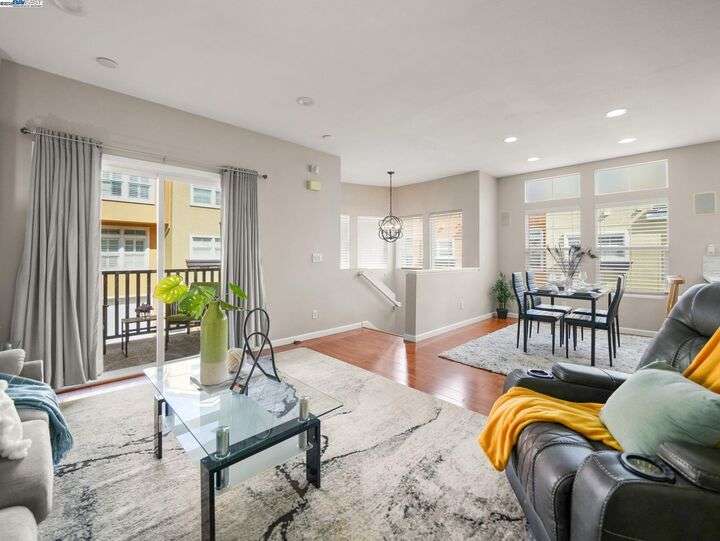 Bright Corner Townhome in Gated Fremont Community,a stylish and well-maintained 2 bed, 2.5 bath corner townhome located in the highly sought-after gated community in Fremont. Offering 1,174 sq ft of light-filled living space, this home combines comfort, privacy, and prime location in one of Fremont’s most convenient neighborhoods.The open-concept main level features hardwood flooring, a spacious living and dining area, and a beautifully updated kitchen with quartz countertops, glass tile backsplash, and stainless steel appliances. A convenient half bath is located downstairs for guests. Upstairs, you'll find two generous bedrooms and two full bathrooms, offering flexibility for families, roommates, or a dedicated office setup.Additional features include a 2-car attached garage, in-unit laundry, central A/C, and updated systems for peace of mind. Being a corner unit, the home gets excellent natural light and added privacy.HOA community offers gated security, a swimming pool, clubhouse, landscaped grounds, and ample guest parking — all for a low HOA of approximately $285/month.Just minutes from BART, major freeways (880/680/84), Pacific Commons, Tesla, and great schools — this move-in ready home is ideal for commuters,first-time buyer or investors (with no rental restrictions).