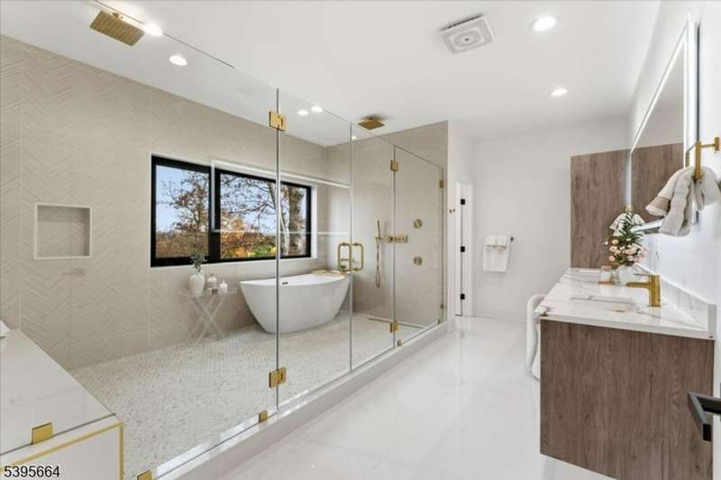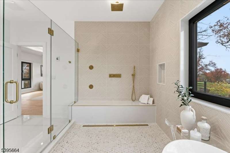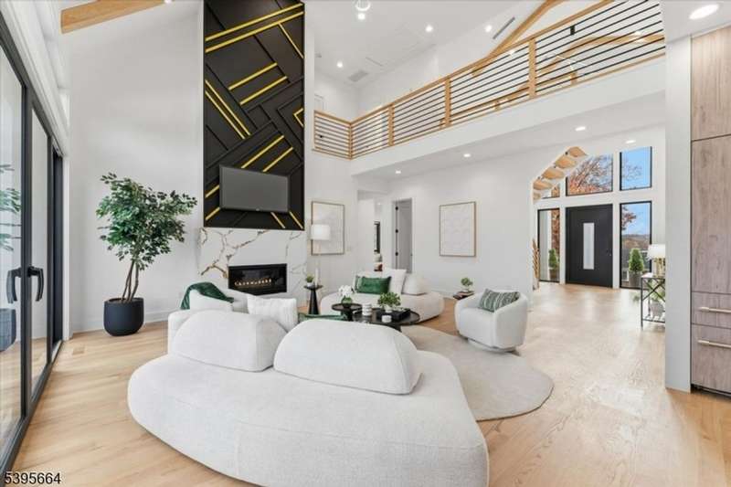 Experience Modern Luxury Redefined in this Stunning Masterpiece, Built and Designed by the renowned NJGCB, an award winning leader in Modern Architecture. Nestled at the end of a quiet cul-de-sac, this New Construction home offers up both privacy & breathtaking water and golf course views. Thoughtfully designed w/ exceptional craftsmanship, this custom home features 6 beds, 6.1 baths, 3 Car spanning over 6,700 sq ft of finished living space. Grand foyer welcomes you with massive floor to ceiling windows, floating staircase & herringbone HW floors. The heart of this home is your gourmet kitchen, where every element was meticulously crafted. Professional grade SS appliances, an abundance of sleek custom cabinetry, center island & walk-in Pantry. Kitchen opens to an impressive 2 story Family Rm w/gas FP, soaring ceilings, skylights & oversized sliding doors leading to outdoor deck, perfect for Entertaining. Elegant butler's pantry connects kitchen w/ Formal Dining Room, blending luxury with functionality. A First Floor Guest Suite offers convenience & accessibility. A beautifully appointed Primary Retreat w/ Covered Balcony, Custom Closets & Spa Inspired Bath w/dual showers & soaking tub. Three additional En Suite Beds & Laundry. Above Ground walk-out basement, filled with sunlight includes Media Rm, Bedroom, Bath, Gym, Office, Wet Bar & Rec Room. Two sets of Sliding Doors leads to paver patio & fenced in yard w/room & approvals for future pool. Luxury Living at its Best.