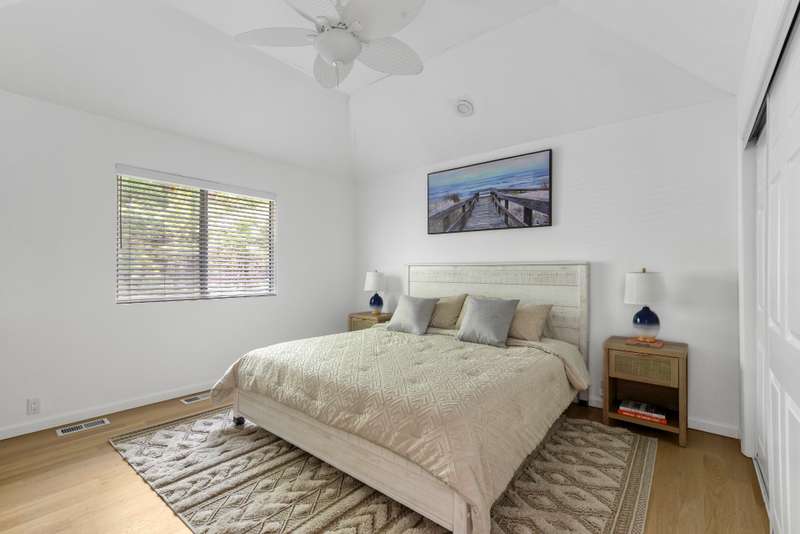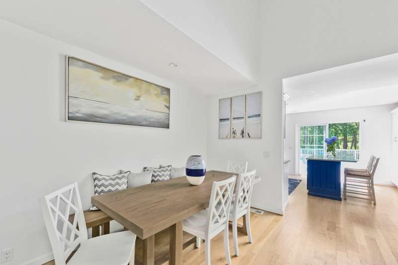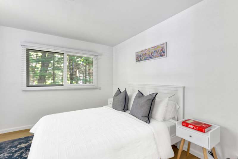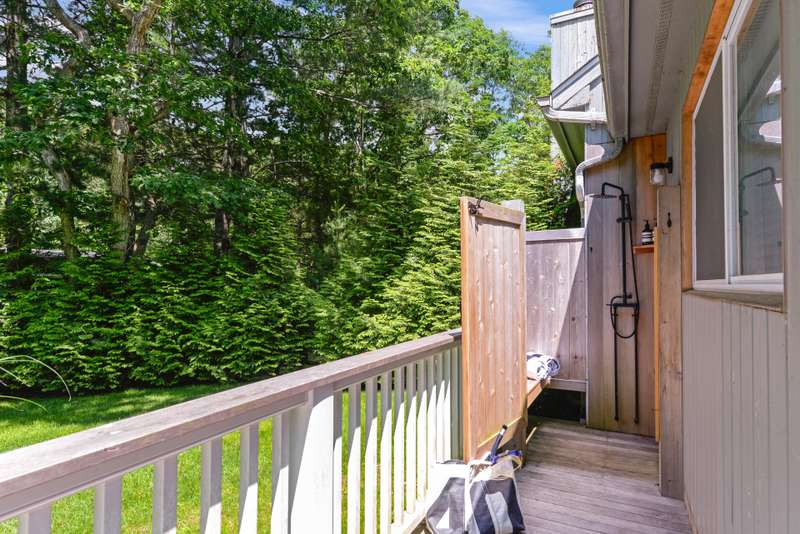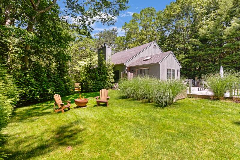Nestled along the border of a wildlife sanctuary to its south, this stylish contemporary home features the perfect layout for lounging, entertaining or simply enjoying the rare sense of calm its environment bestows. The home features an ensuite primary, 3 guest bedrooms, 2 baths and an open style living and dining area. A partially open kitchen with all brand new stainless steel appliances is surrounded by windows, a glass slider and a skylight above. Outside, a mahogany deck surrounds multiple seating and dining areas, a hot tub spa, an 18' x 32' ft heated pool and an outdoor shower. A wonderful lawn with a fire pit to the side blends gracefully with the endless views beyond. Close to East Hampton village and a variety of the most beautiful beaches in the world, this exclusive rental property elevates the extraordinary experience of life in the Hamptons to something truly sensational.