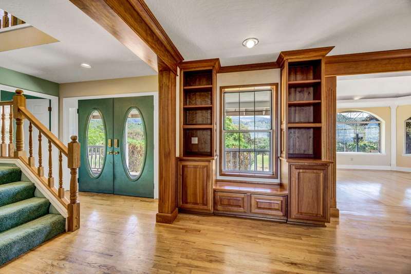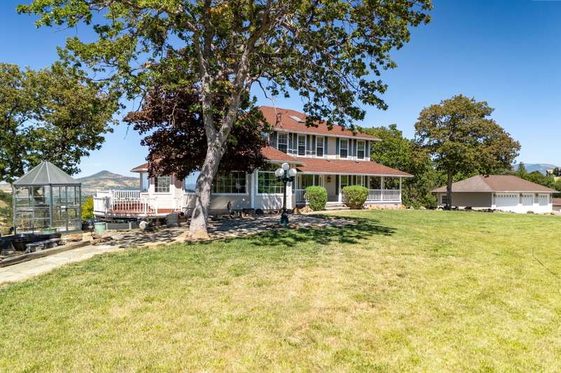 Southern Oregon Dream Ranch! Barn/shop, Playhouse & detached office w/loft space & slider & 4 car garage. Home sits up on a knoll that has amazing views of the Rogue Valley, & tons of windows to take in the views. Lg sunroom, Library w/ wood stove & built ins, wood floors. Kitchen with Cherrywood cabinet's w/pull outs, slate floors convection oven, 4 door refrige, dual fuel oven. Master on the main level, walk in closet, lg shower, sauna, dbl sinks, French doors to covered deck. Lg family rm upstairs w/2 bdrms & full bathroom w/claw foot tub tile floor and ½ bath. Lg laundry rm with laundry chute & storage. Downstairs would make a great work out rm or office with lots of windows & door to outside. Gated entry. Owner Carry Terms Available.